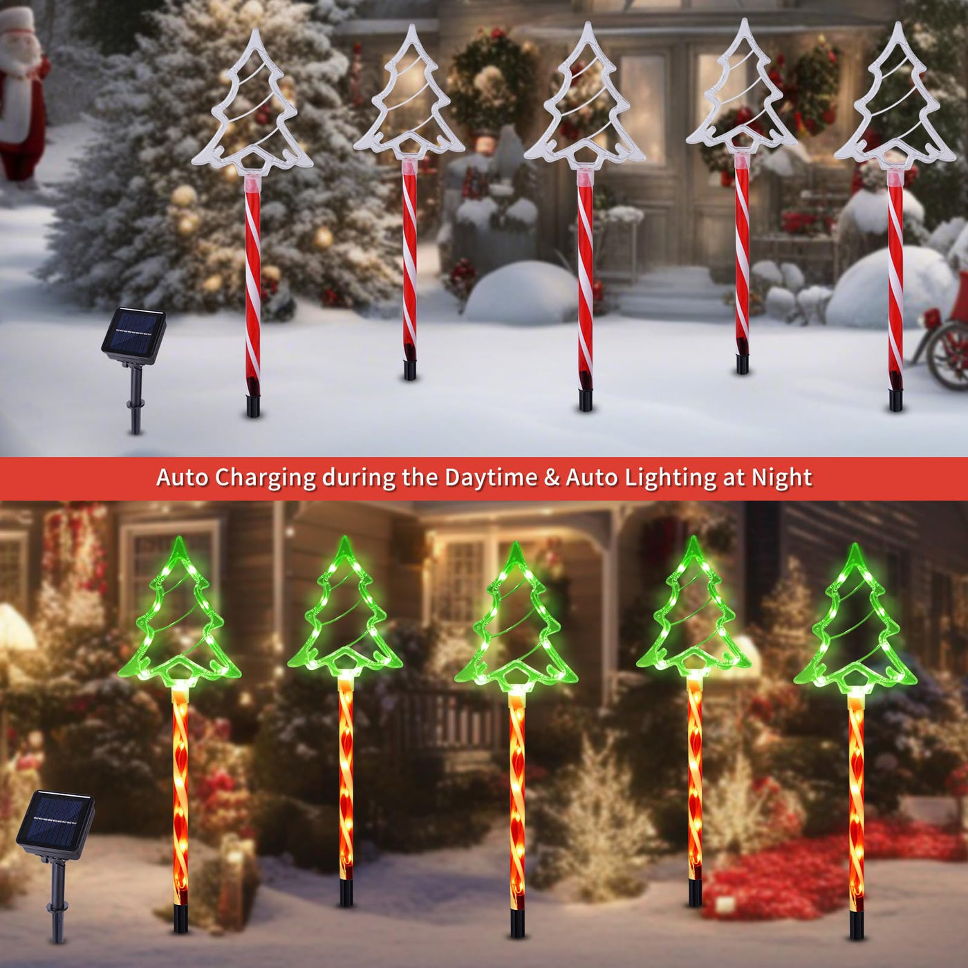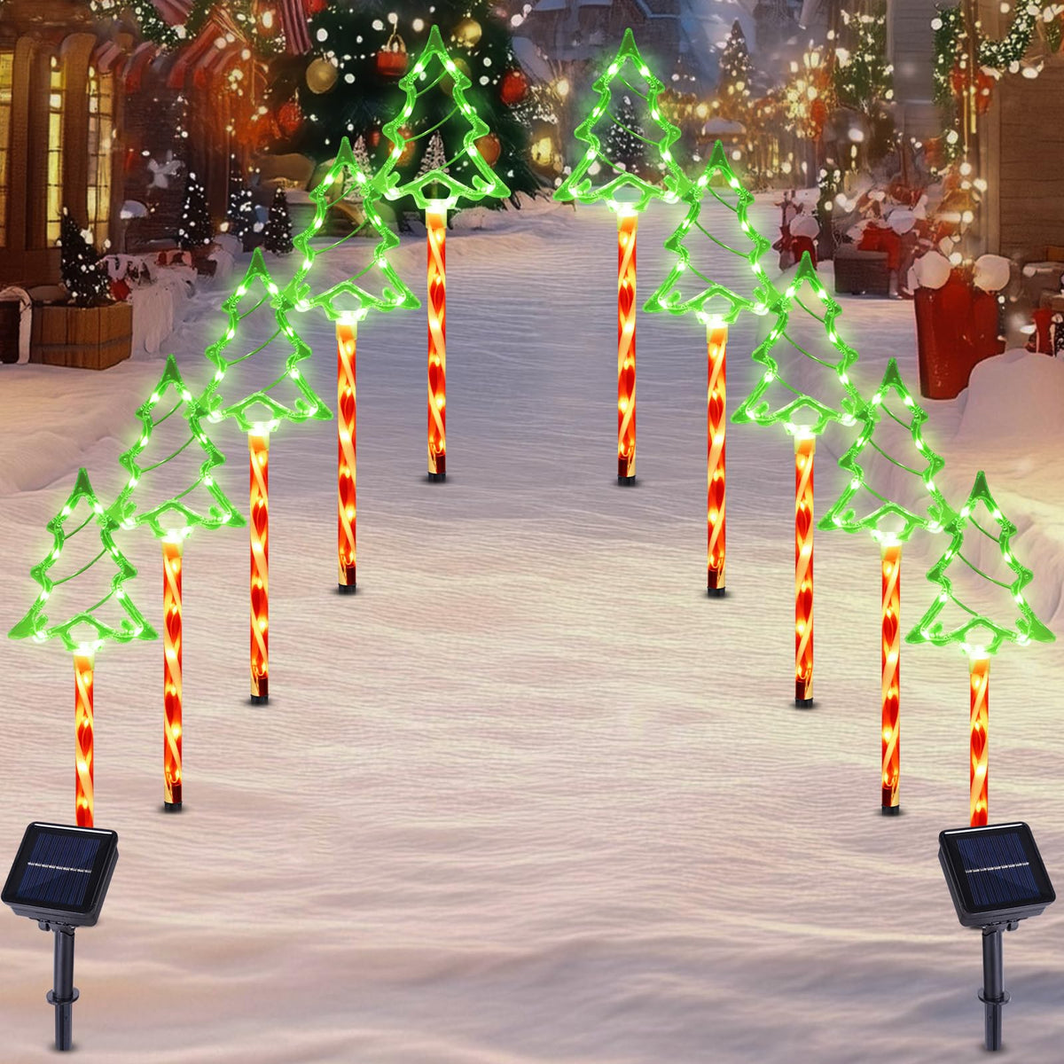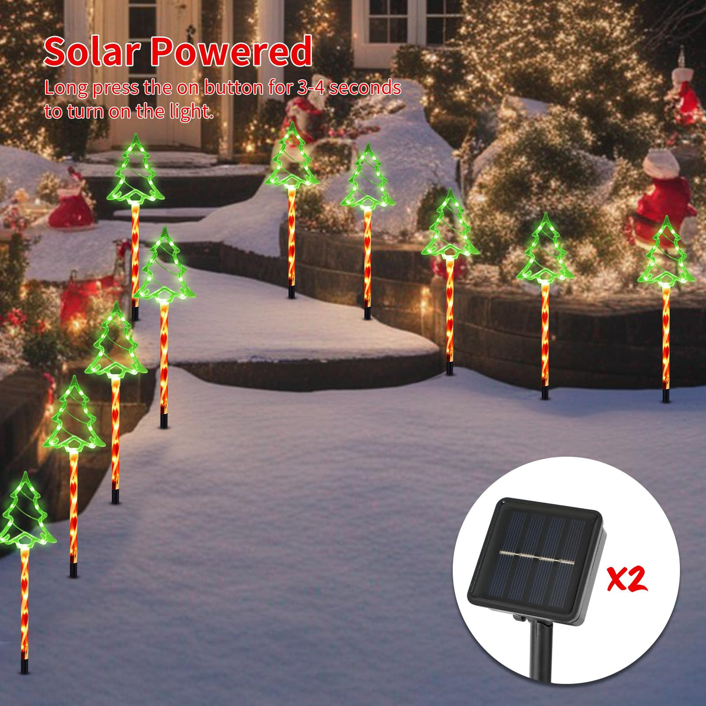 Christmas Solar Pathway Lights Outdoor Decorations 8 Modes Xmas Tree Candy Lights Waterproof Led Garden Stake Light For Walkway Yard Lawn Porch Holiday Decor 10-Pack (Red Tube Tree 10 Pack)