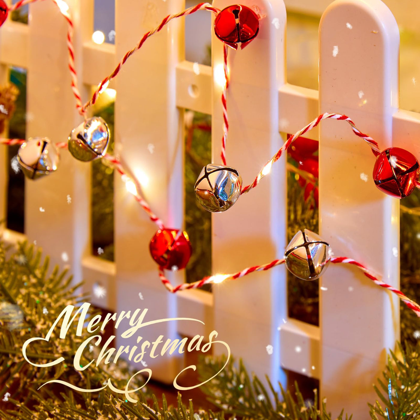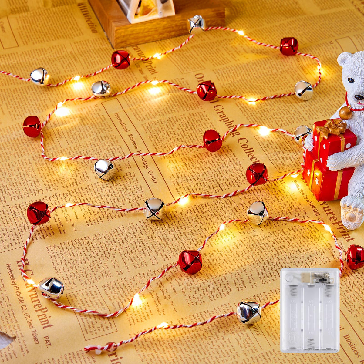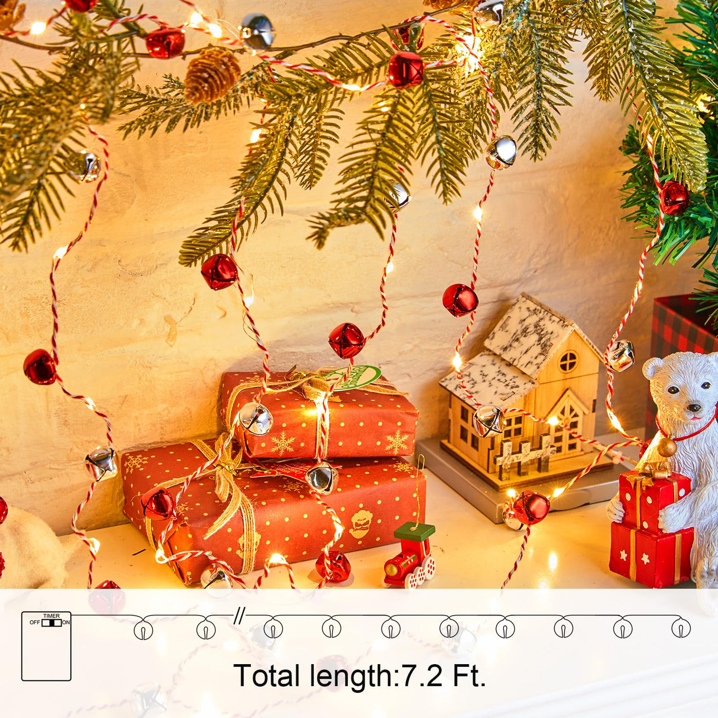 Christmas String Lights, 7.2Ft 20 Leds Battery Powered Jingle Bell Lights For Christmas Winter Festival Indoor, Xmas Tree, Fireplace, Gift Decor, Red/Silver Bells