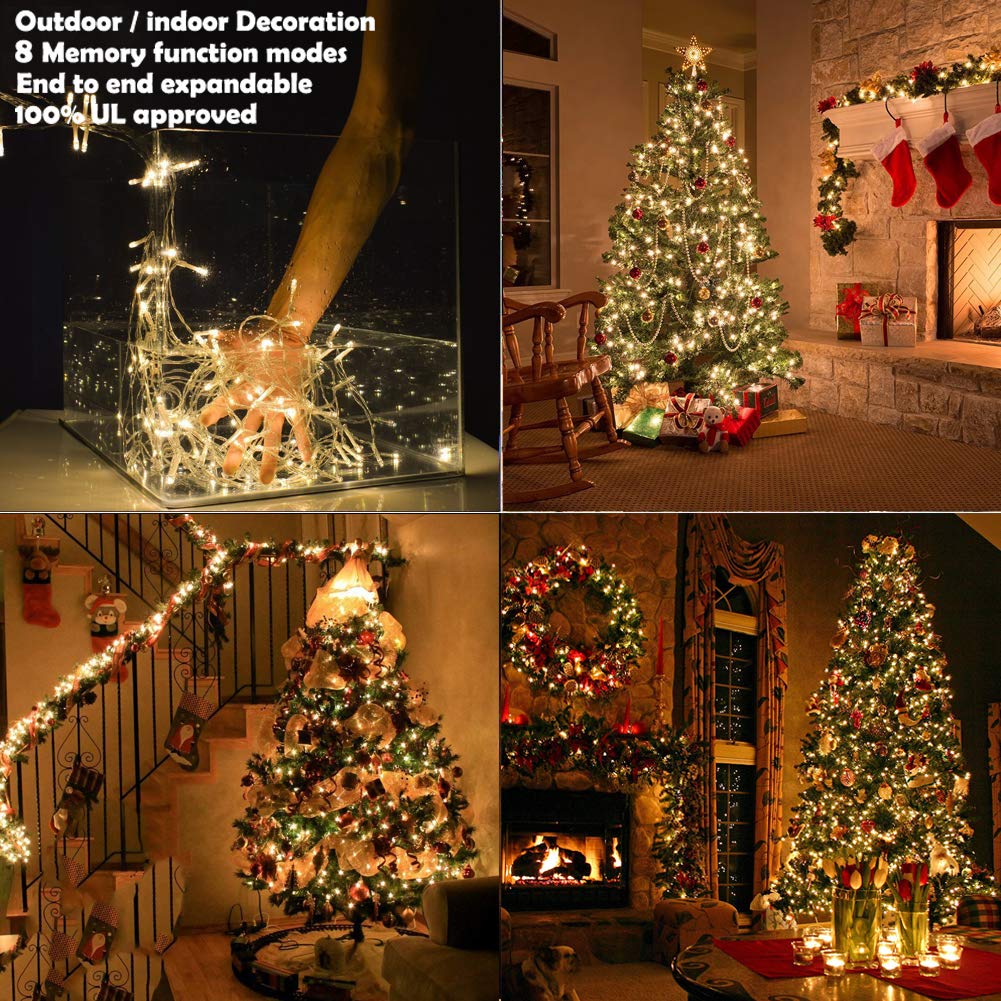 Christmas Tree Lights - 320 Leds 115Ft/35M End-To-End 8 Modes Plug In Indoor/Outdoor Waterproof Decorative Fairy Twinkle String Lights For New Year/Thanksgiving Day/Wedding/Patio/Home - Warm White