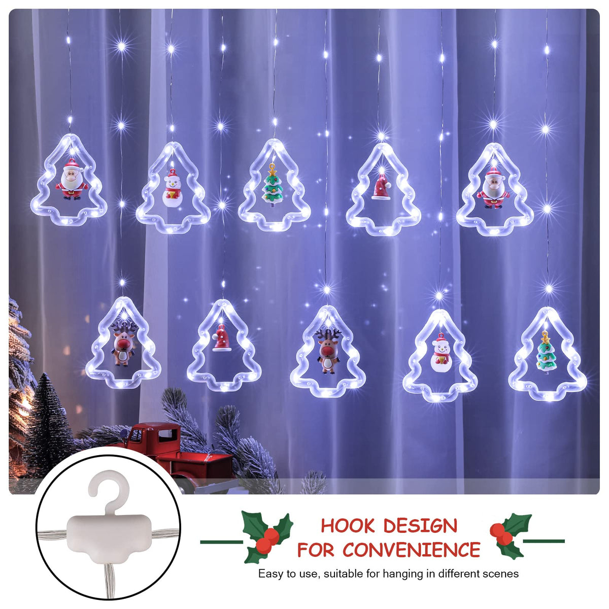 Christmas Window Lights - Bloomwin Lighted Xmas Window Decorations - Tree Shape Ring Light With Ornament Curtain Light Indoor - Usb Novelty String Hanging Lights For Christmas Home Bedroom Decor