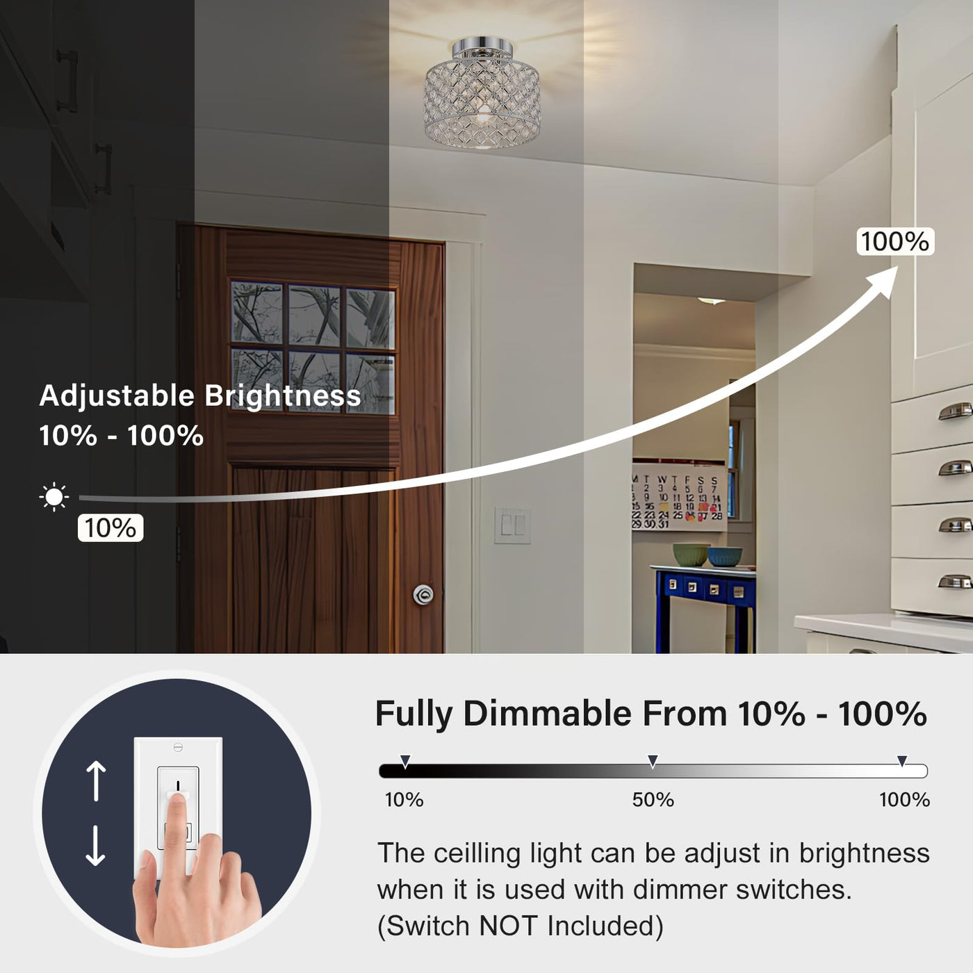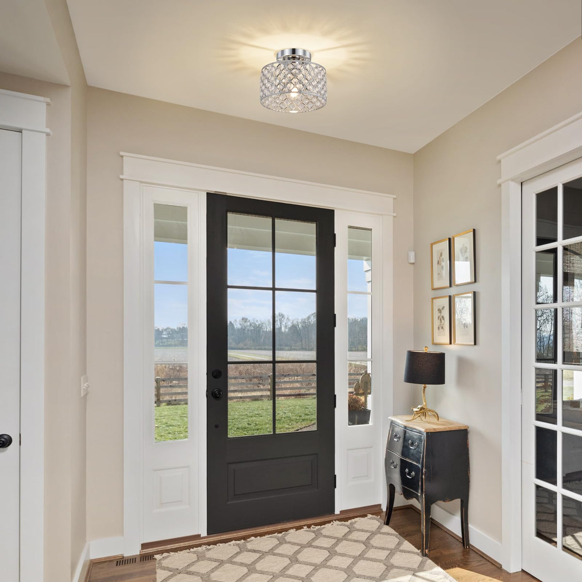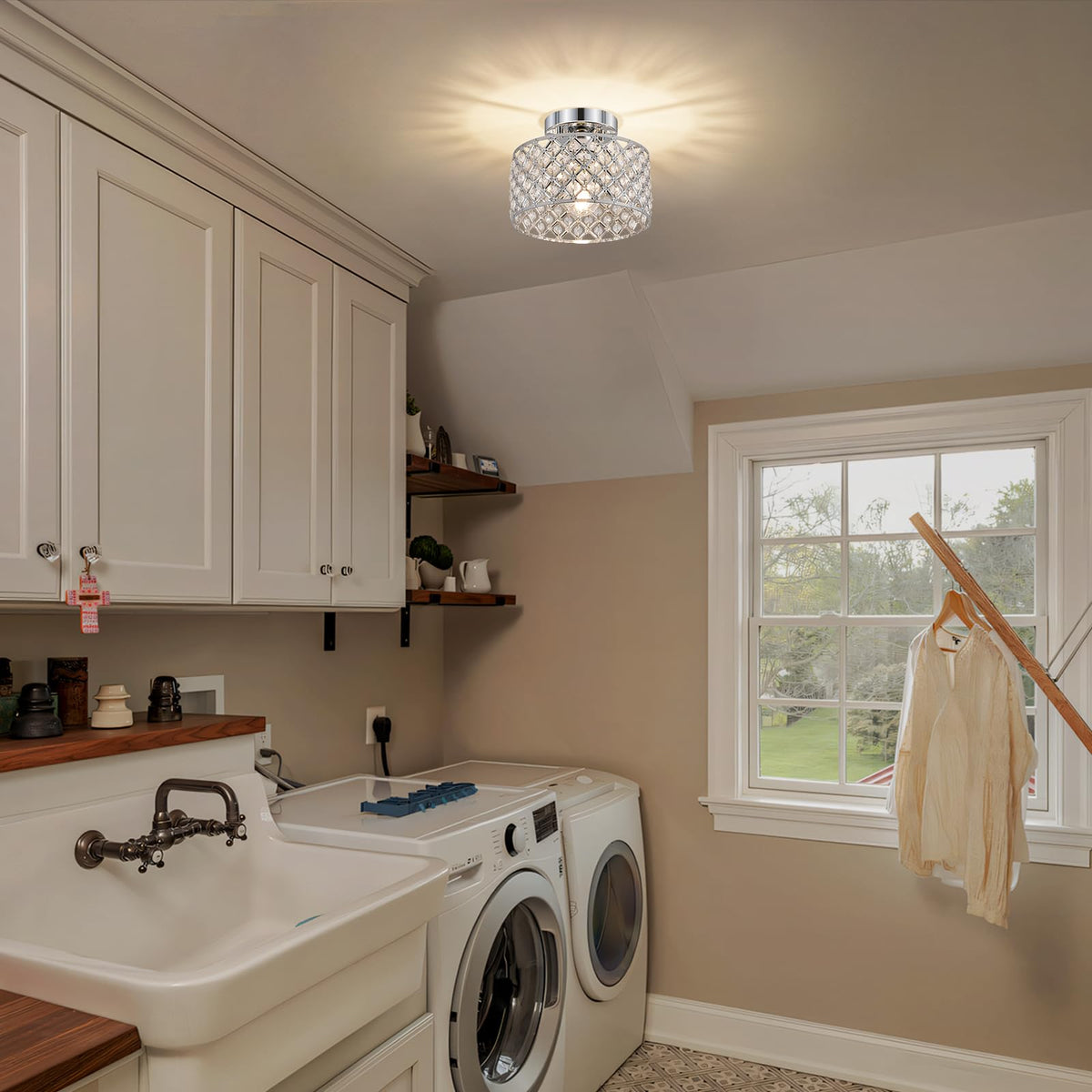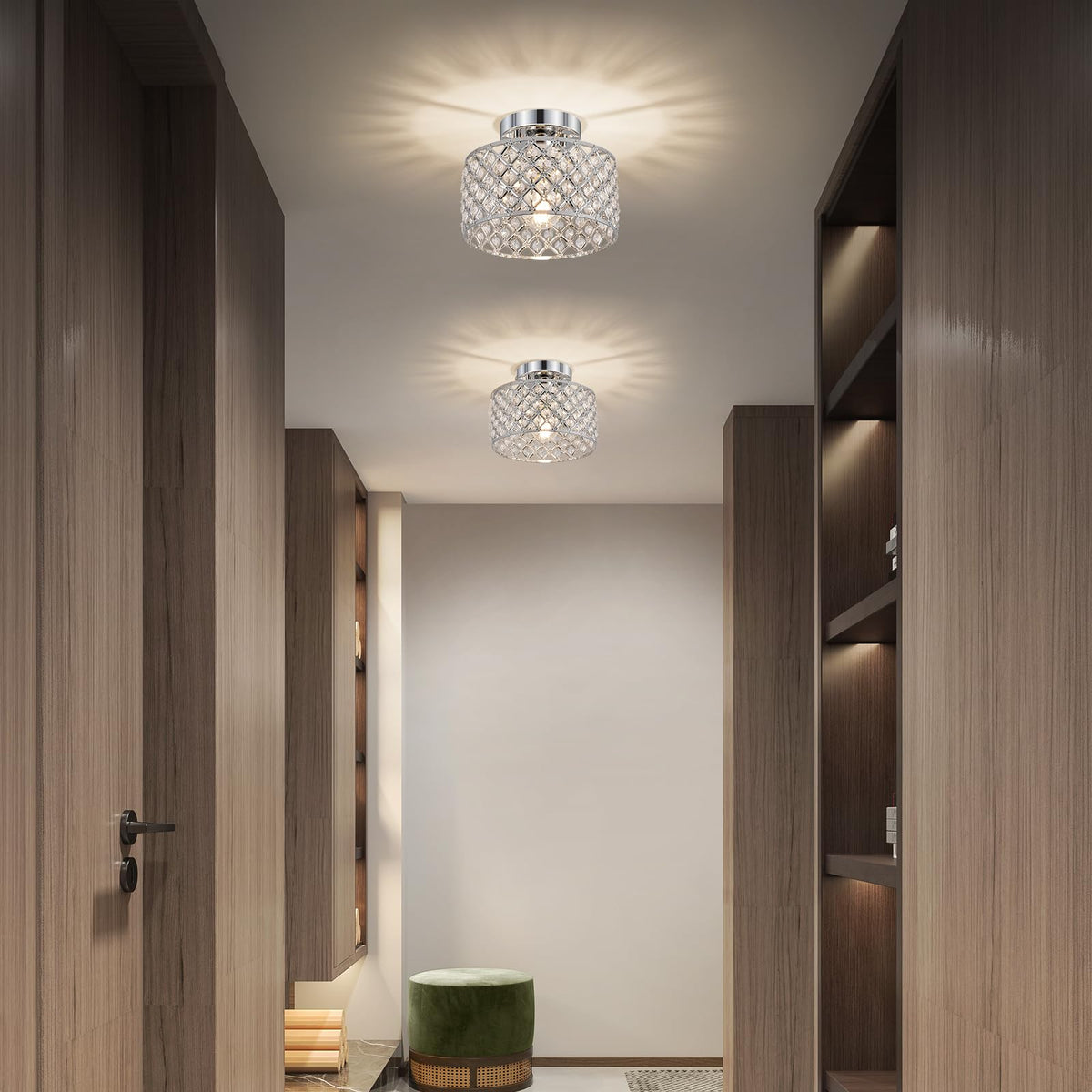Chrome Crystal Ceiling Light Fixture Modern Semi Flush Mount Ceiling Lighting Fixture Round Small Chandelier For Hallway Entryway Laundry Room Kitchen Bedroom Foyer Bathroom 1 Light 9 Inch