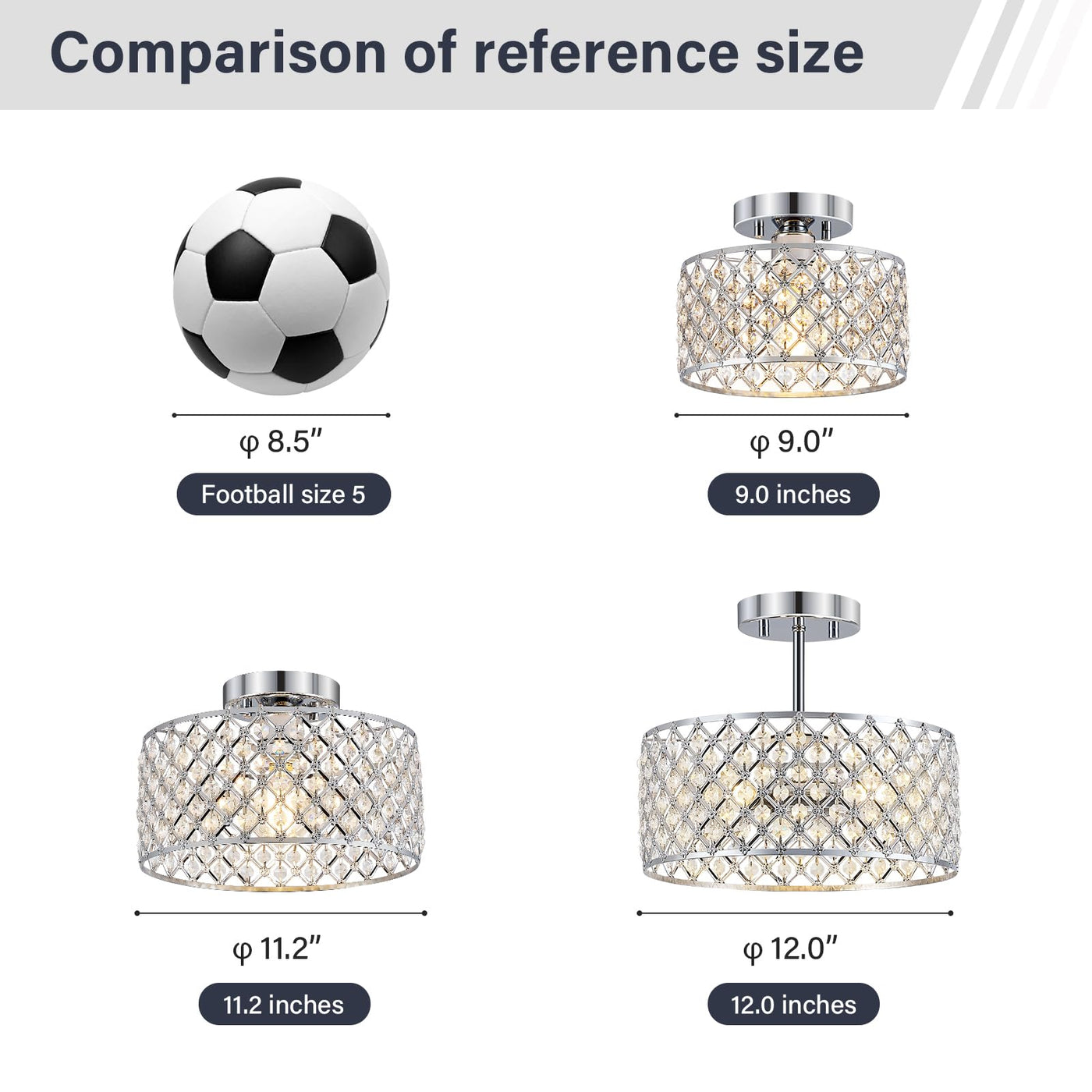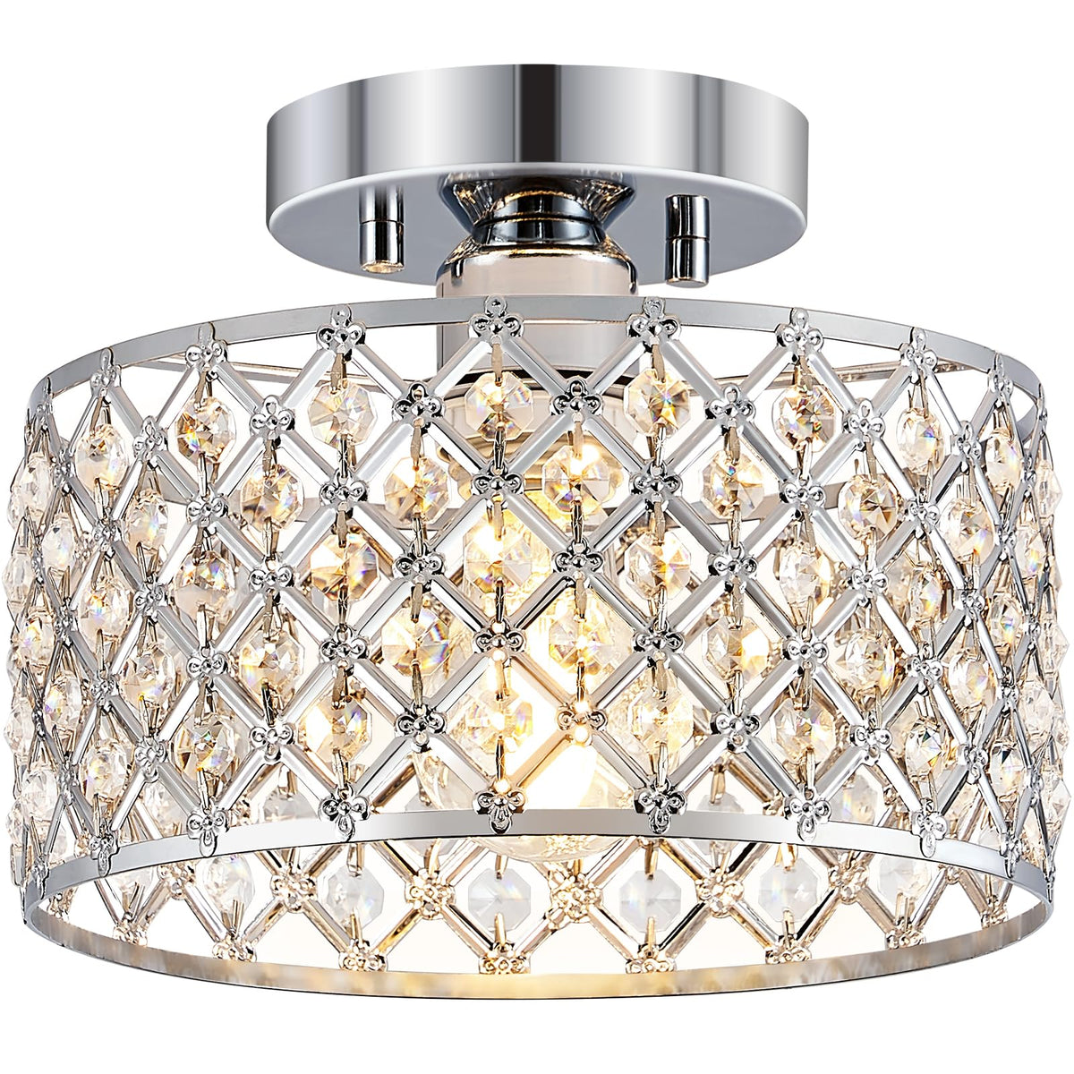 Small Chrome Crystal Semi Flush Mount Ceiling Light Fixture