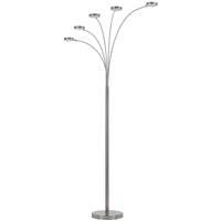 Chuck 82 Inch Modern Arc Floor Lamp, 5 Puck Lights, Brushed Steel Finish