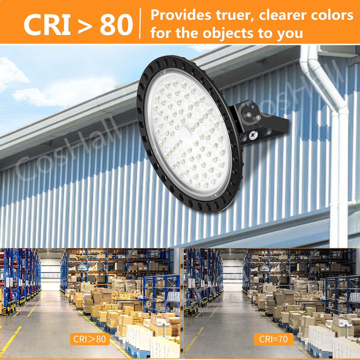 Wide Application: With IP65 ingress protection, this LED high bay light is waterproof and ideal for various environments, including garages, workshops, barns, gymnasiums, factories, exhibition halls, supermarkets, and basements.