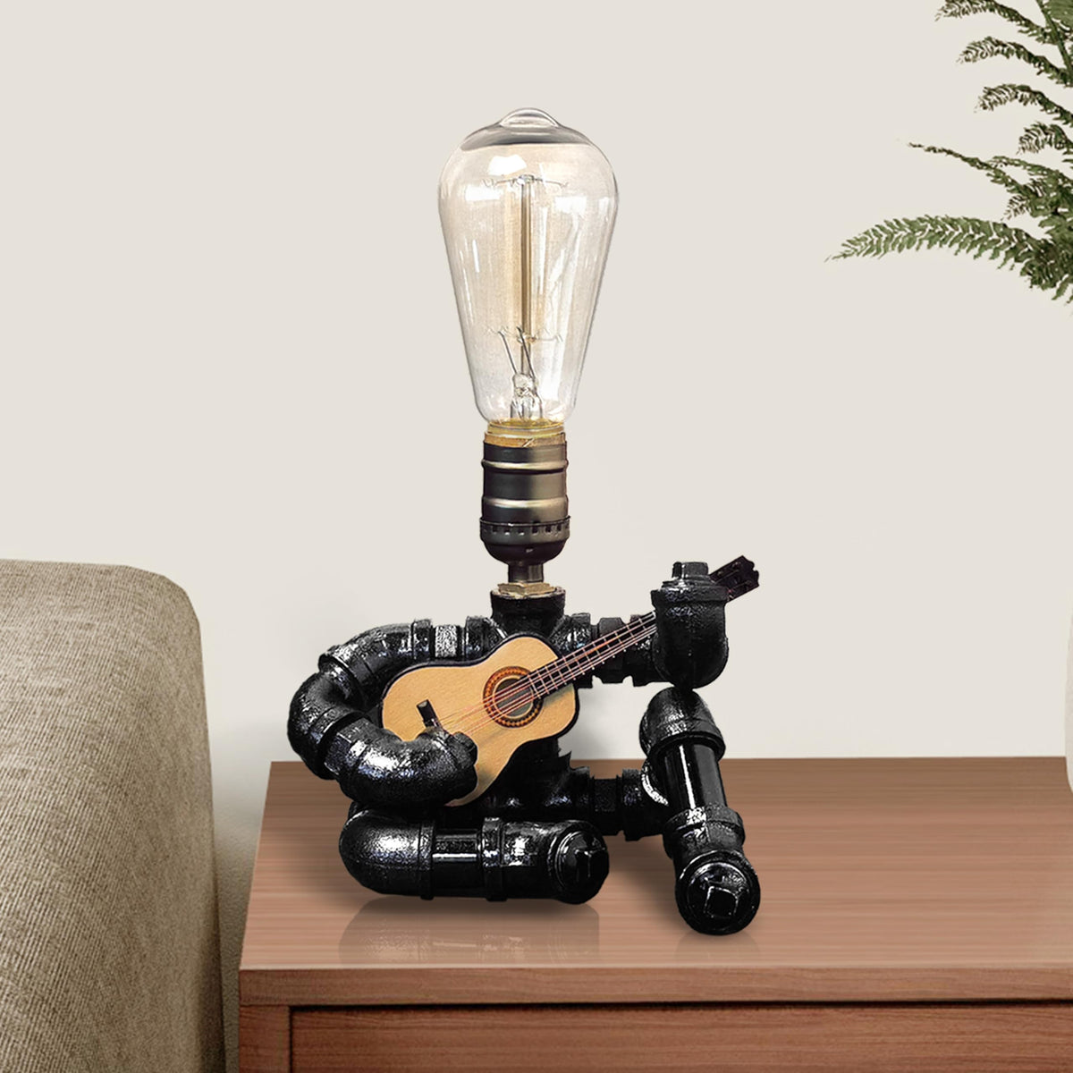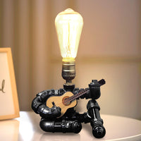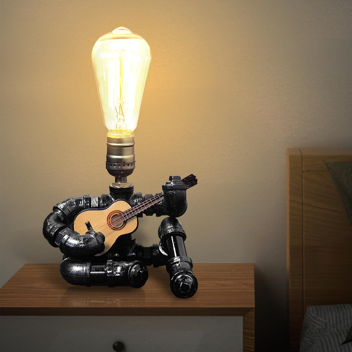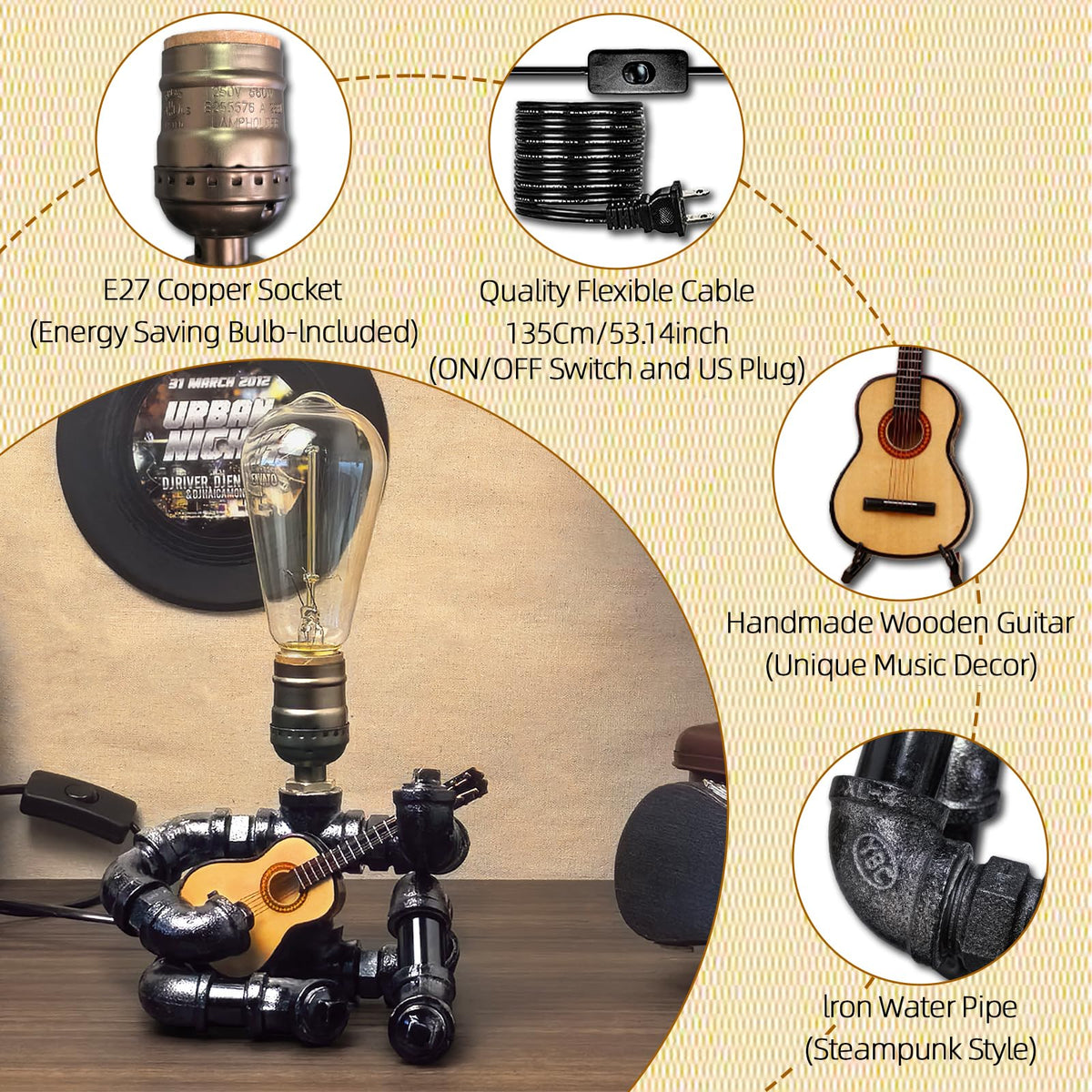 Industrial Guitar Table Light: Our Guitar Lamps Seamlessly Combine The Sturdiness Of Metal Plumbing With The Finesse Of Robotic Modeling. Effortlessly Blends Industrial And Contemporary Aesthetics. Music Guitar Lamp: Elevate Your Decor With A Robot Holding A Mini Guitar, Adding A Touch Of Rock 'N' Roll Rebellion To Your Space. Robot Pipe Lamp: Engineered With Durability In Mind, Our Metal Pipe Lamp Is A Testament To Quality Craftsmanship. The Robust Construction Ensures Longevity, Making It A Reliable Companion That Stands The Test Of Time While Adding An Industrial Edge To Your Decor. Guitar Lamps Decor: Adaptable To Any Setting, This Steampunk Music Lamp Effortlessly Enhances The Aesthetic Of Your Living Room, Bedroom, Or Office. Metal Guitar Lamps: Infuse Your Room With An Edgy Industrial Vibe, Creating A Bold And Distinctive Atmosphere That Stands Out From The Ordinary.