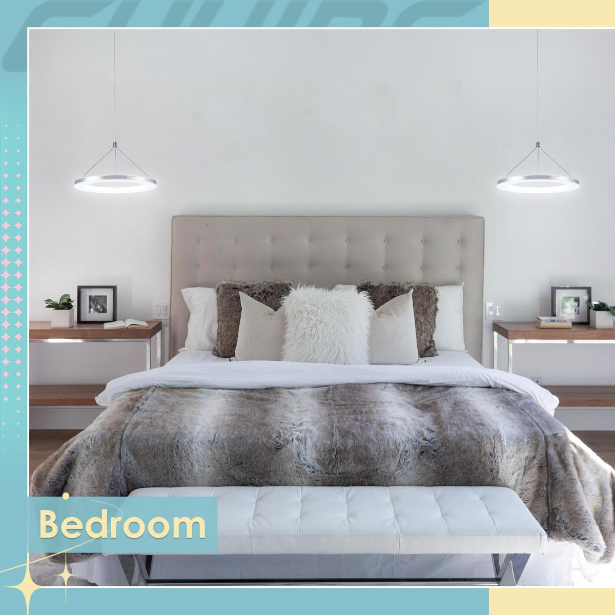 Chying Modern Led Pendant Light Kitchen Island Silver Ring Pendant Lighting 6500K Cool White Adjustable Height Ceiling Hanging Light Fixture For Bedroom Dining Room Living Room