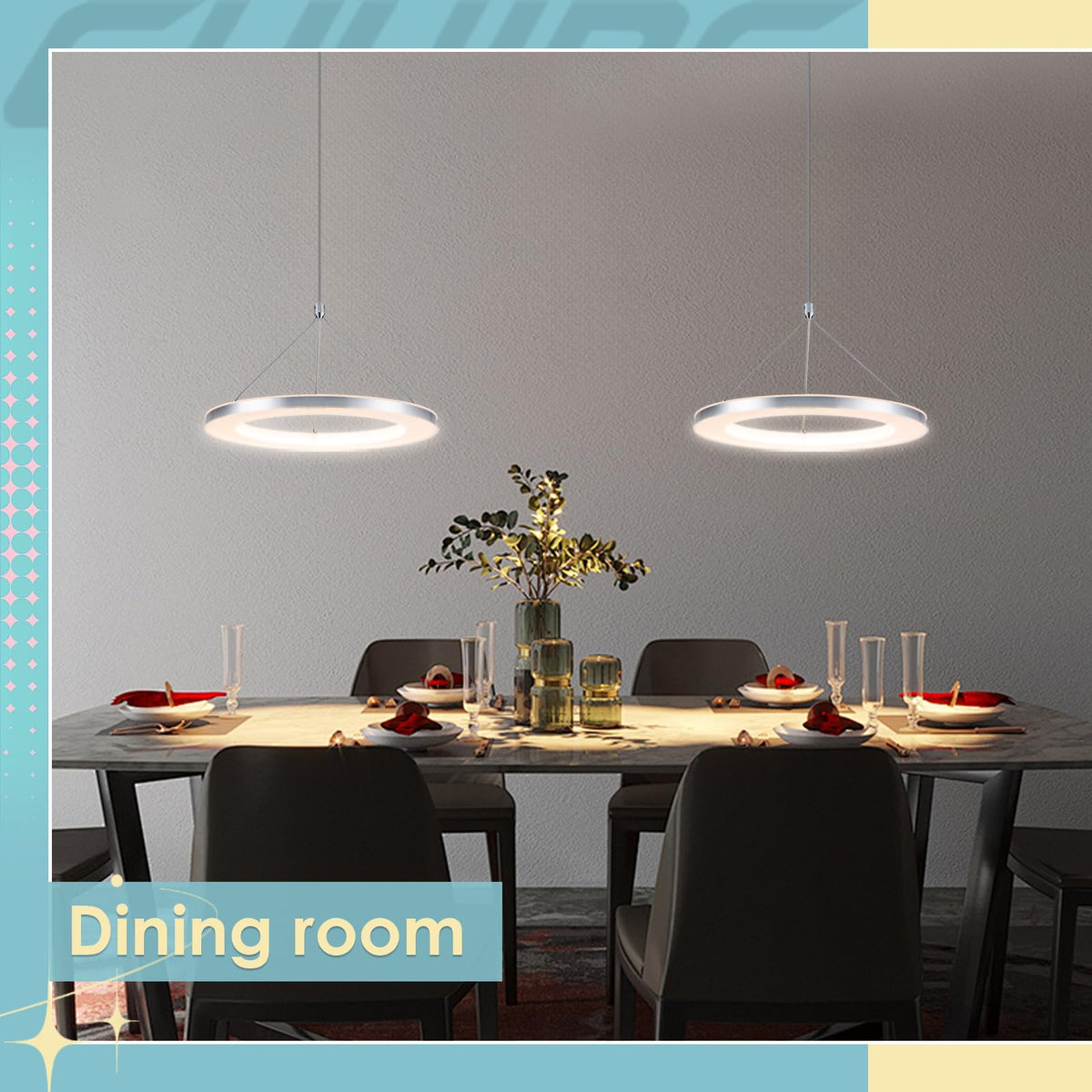 Q: What materials is the pendant light made from?A: The fixture is constructed from high-quality metal and acrylic, ensuring durability, anti-corrosion properties, and effective heat dissipation, while also maintaining a modern aesthetic.