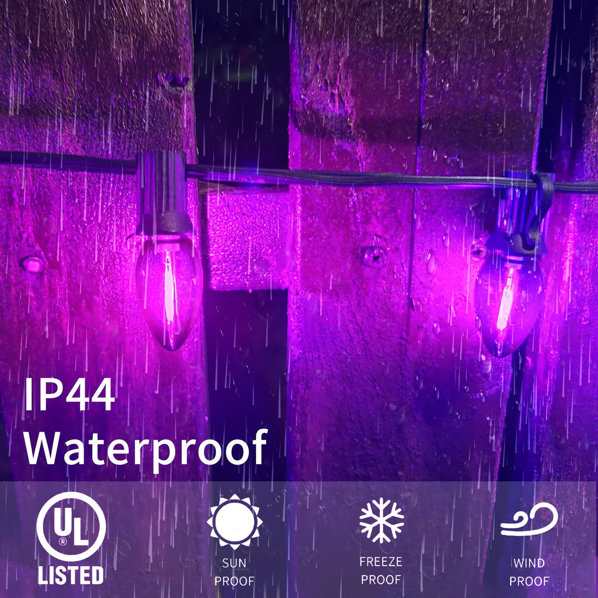 1. Purple Light Bulbs Material: Each C7 led light bulbs made of plastic and E12/ C7 Nickel Candelabra base. High quality nickel material which will form a very dense and strong protective film to prevent corrosion from weathering 2. Widely Applicable: C7 LED light bulbs are easy to install and are a great choice for LED chandelier bulbs, night lights, decorative lighting, Christmas string lights, Christmas villages, patio lights, and hanging lights, creating the right ambiance for your home environment 3. Long Lifespan: Each Christmas light bulbs can last up to 50,000 hours, providing long-term use and making it virtually maintenance-free 4. Pack of 12 C7 LED bulbs, fits into C7 or E12 light sockets, perfect for Christmas holiday decoration