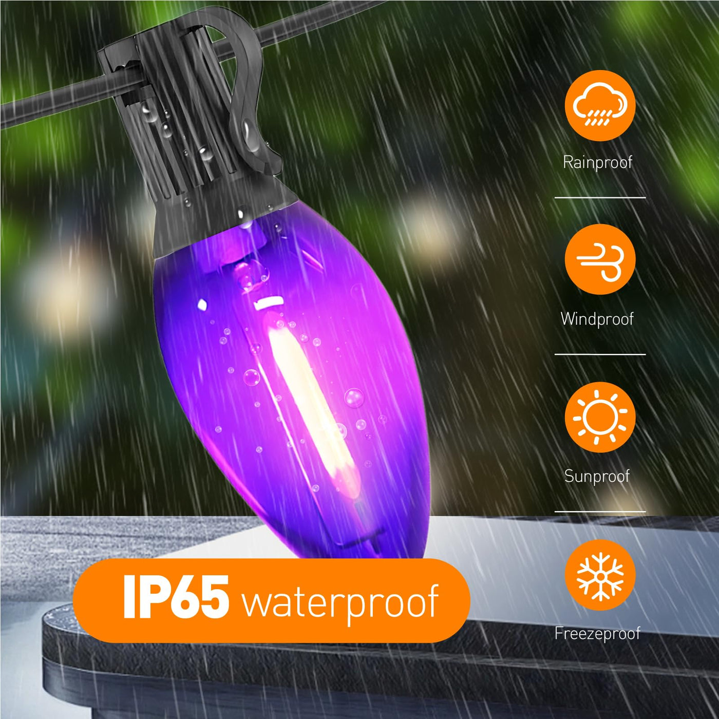 Q: Can these string lights be used outdoors?A: Yes, the C7 string lights are designed for outdoor use and have an IP65 waterproof rating.