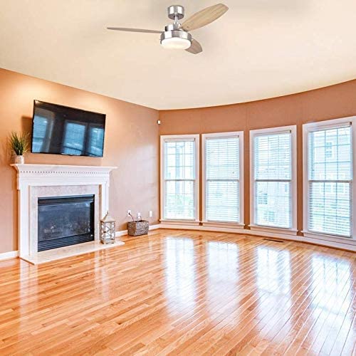 With its contemporary style designed to bring a refined touch to indoor spaces the Ciata Lighting 42 Inch Alloy Indoor Ceiling Fan in Brushed Nickel Finish with LED Light Fixture in Opal Frosted Glass adds an element of beauty to the locations in which it is installed. Crafted with great attention the LED fan includes an integrated dimmable LED light kit with opal frosted glass provides bright, efficient illumination, and increases the energy and cost-saving benefits, plus it eliminates the need to change bulbs in hard to reach ceiling fans. Product specifications and technical details include 4-inch down rod,78-inch lead wire, and a Slope Angle of 13 degrees. The length of the Canopy from the top to bottom of the blade: 6.38 inches, and from the top of the canopy to the Bottom of the switch house being 11 inches. The 3 blades with brushed nickel finish and reversible beech blades complete the modern look. Featuring a high-quality motor that delivers powerful air movements and quiet performance, the Ciata 42 Inch Alloy Indoor fan provides performance for round the year comfort and is ETL listed for safety standards