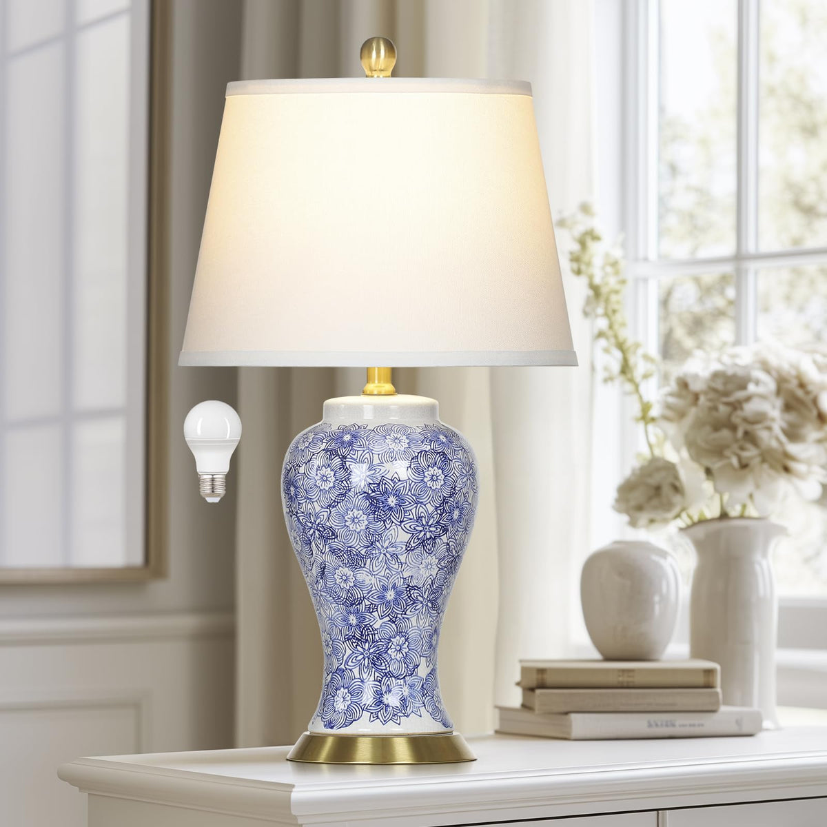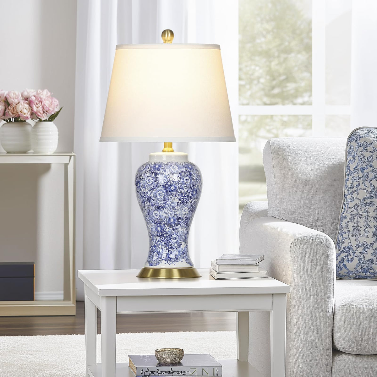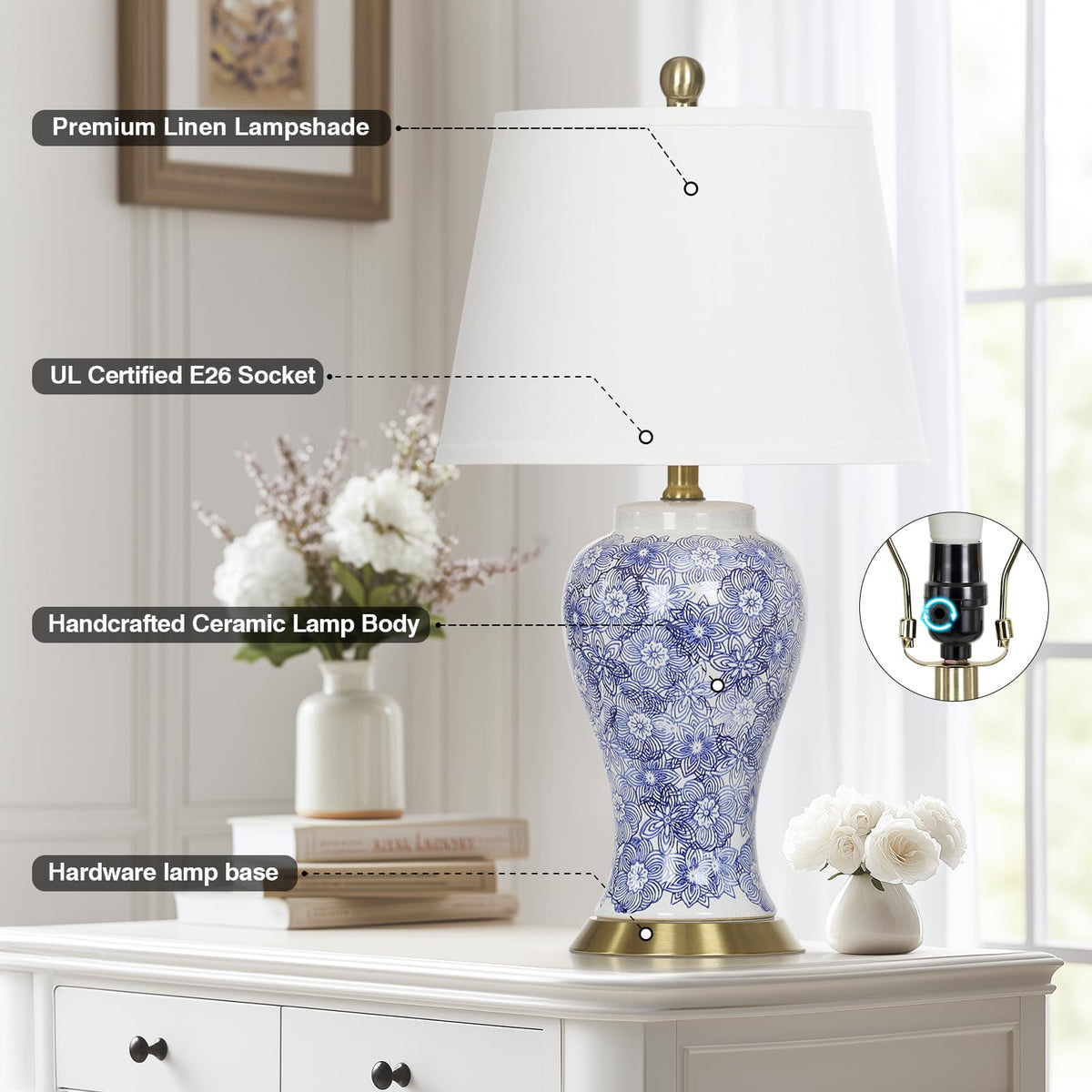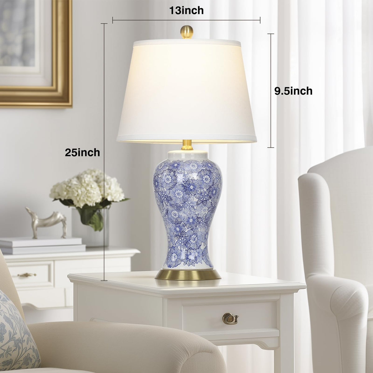 Cinkeda 25'' Blue And White Chinoiserie Ceramic Table Lamp - Elegant Ginger Jar Design For Transitional Style Living Rooms, Bedrooms, And Home Offices