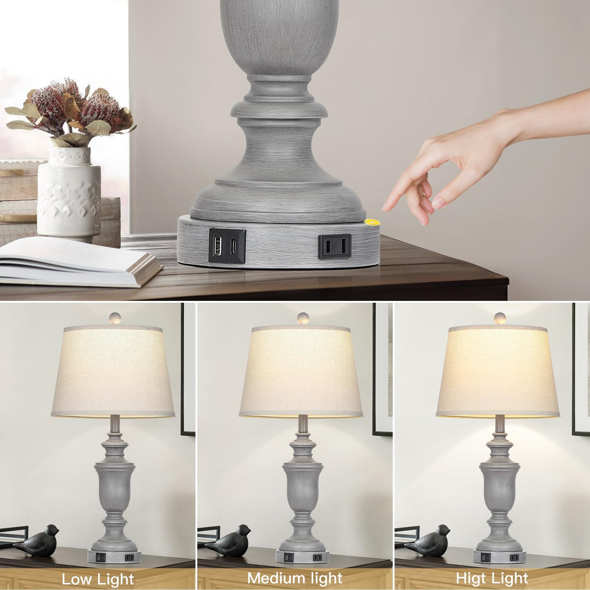 Cinkeda 26" Gray Touch Lamps Set Of 2 With Usb Ports & Ac Outlet For Bedroom & Living Room