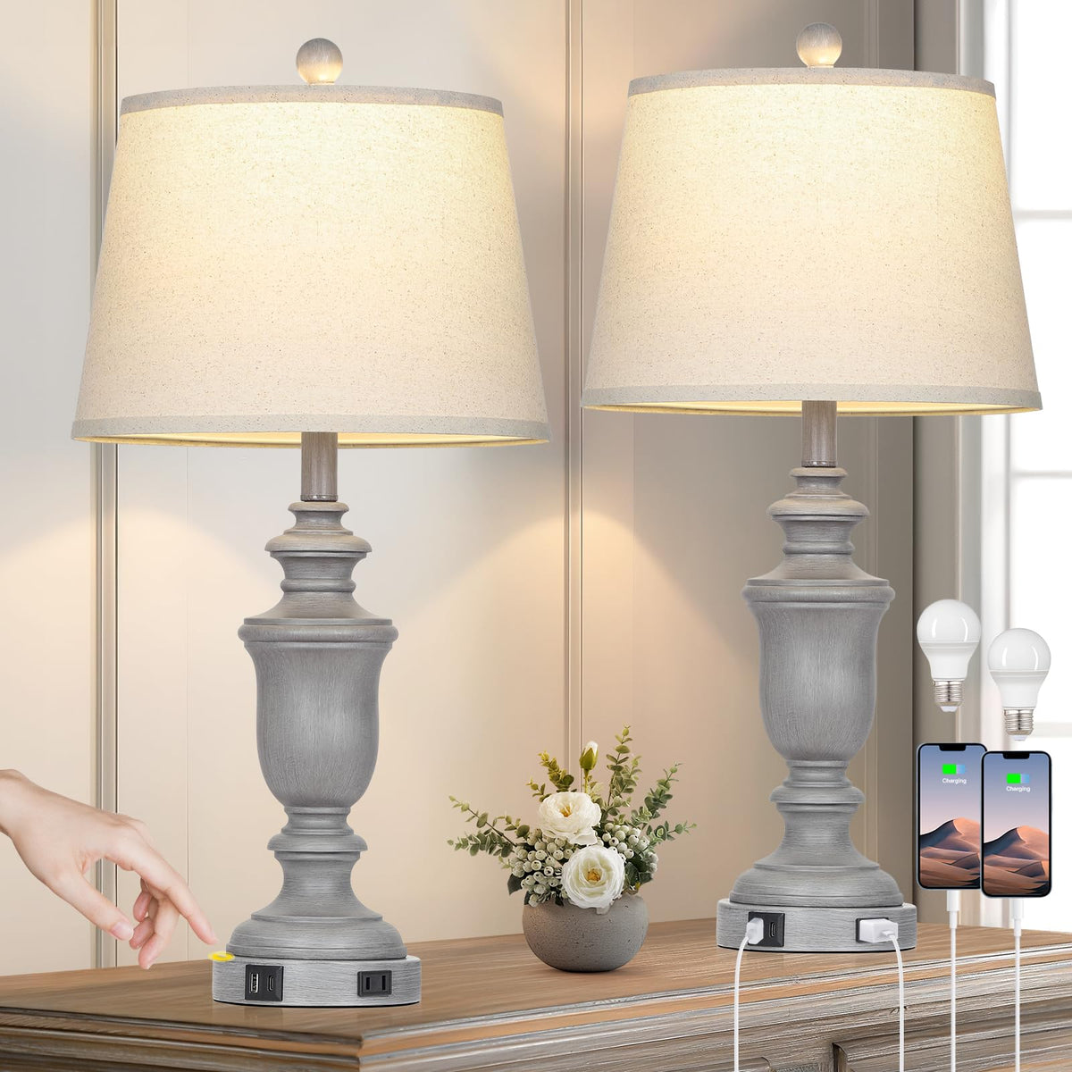 Transform your living space with the Cinkeda 26" Gray Table Lamps, a stylish and functional addition to any room. This set of 2 lamps is designed for modern living, combining retro charm with contemporary convenience. Perfect for your farmhouse living room, bedroom, or bedside table, these lamps offer a unique blend of style and practicality.