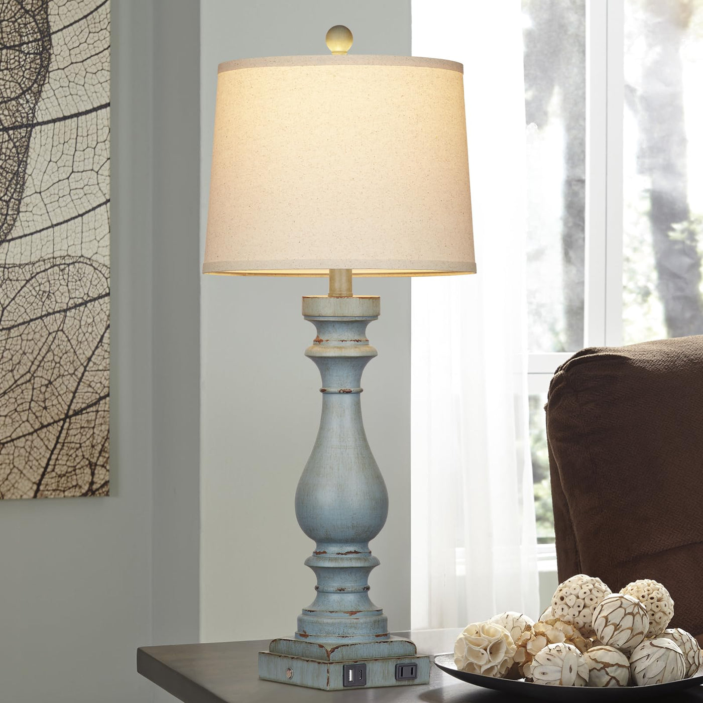 Cinkeda 29'' Tall Table Lamp For Living Room Set Of 2,Coastal Bedside Nightstand Lamps With Usb C+A Ports & Ac Outlet,3-Way Dimm