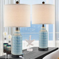 Cinkeda Blue Ceramic Table Lamps Set Of 2, Touch Control, Usb Ports, 3-Way Dimmable, Bulbs