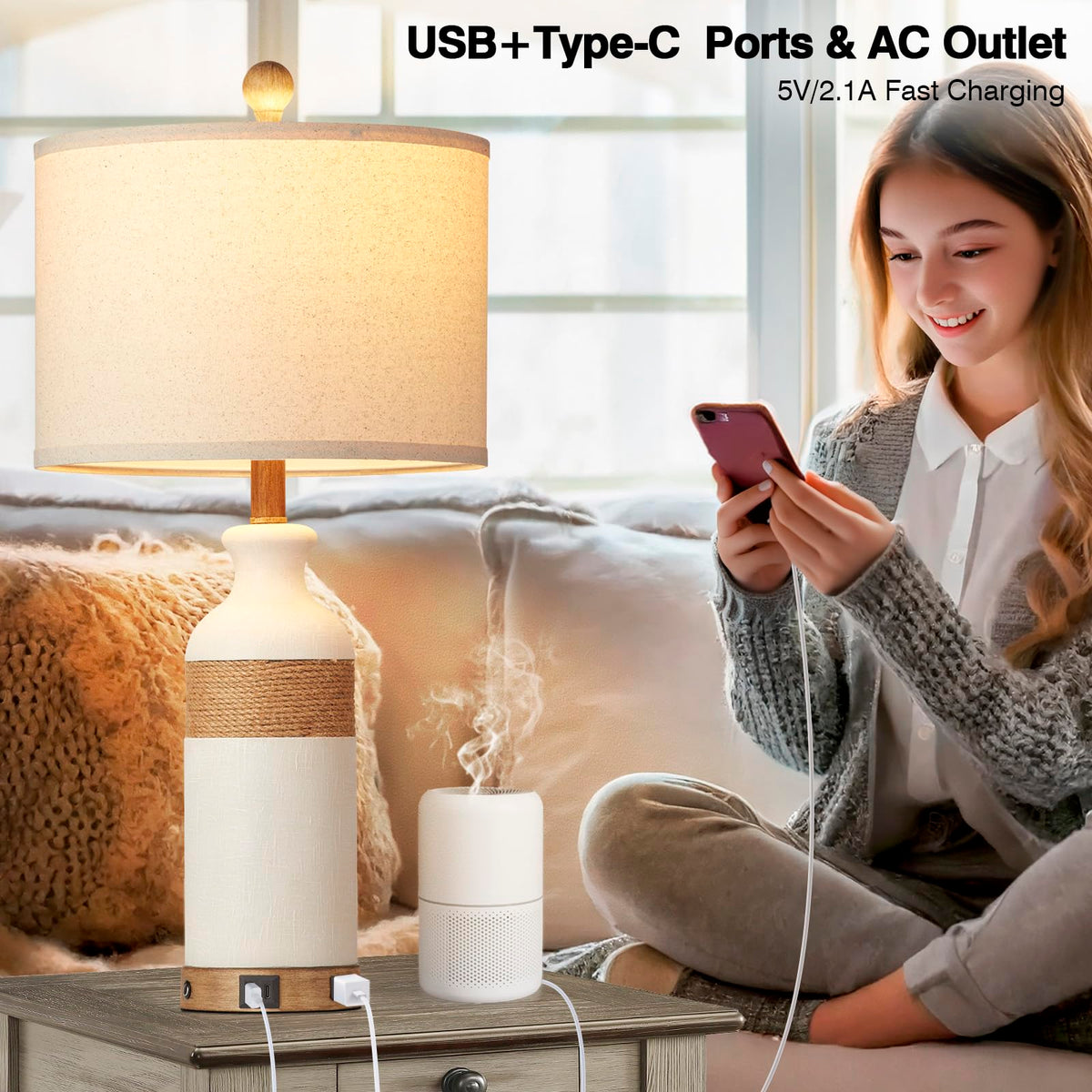 - **Convenient Charging Options**: Equipped with built-in USB A & C charging ports (5V/2.1A) and a 2-prong AC outlet, this lamp allows you to charge your devices effortlessly. Whether the lamp is on or off, you can power your phone, Kindle, or other devices right from your nightstand, keeping your space organized and clutter-free.