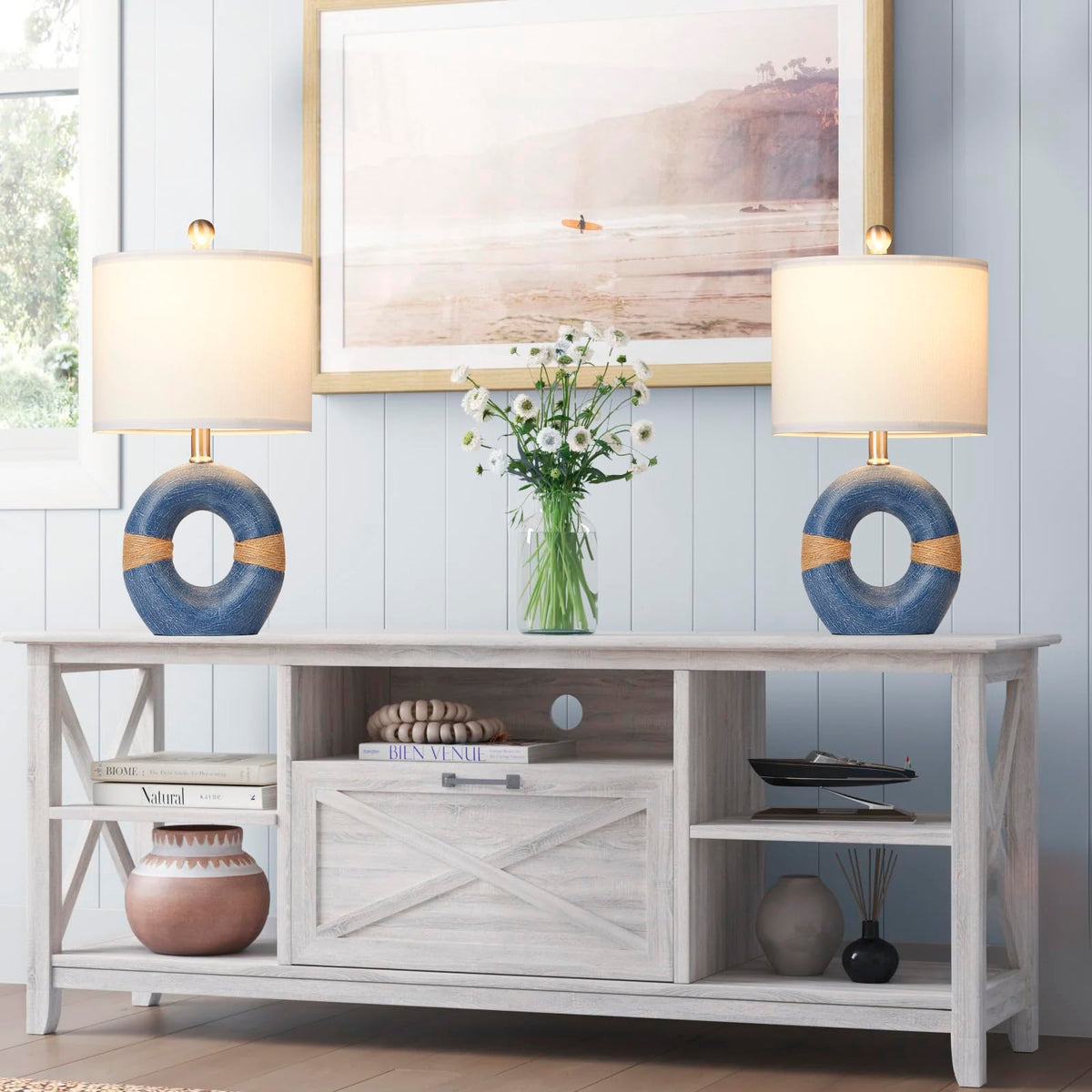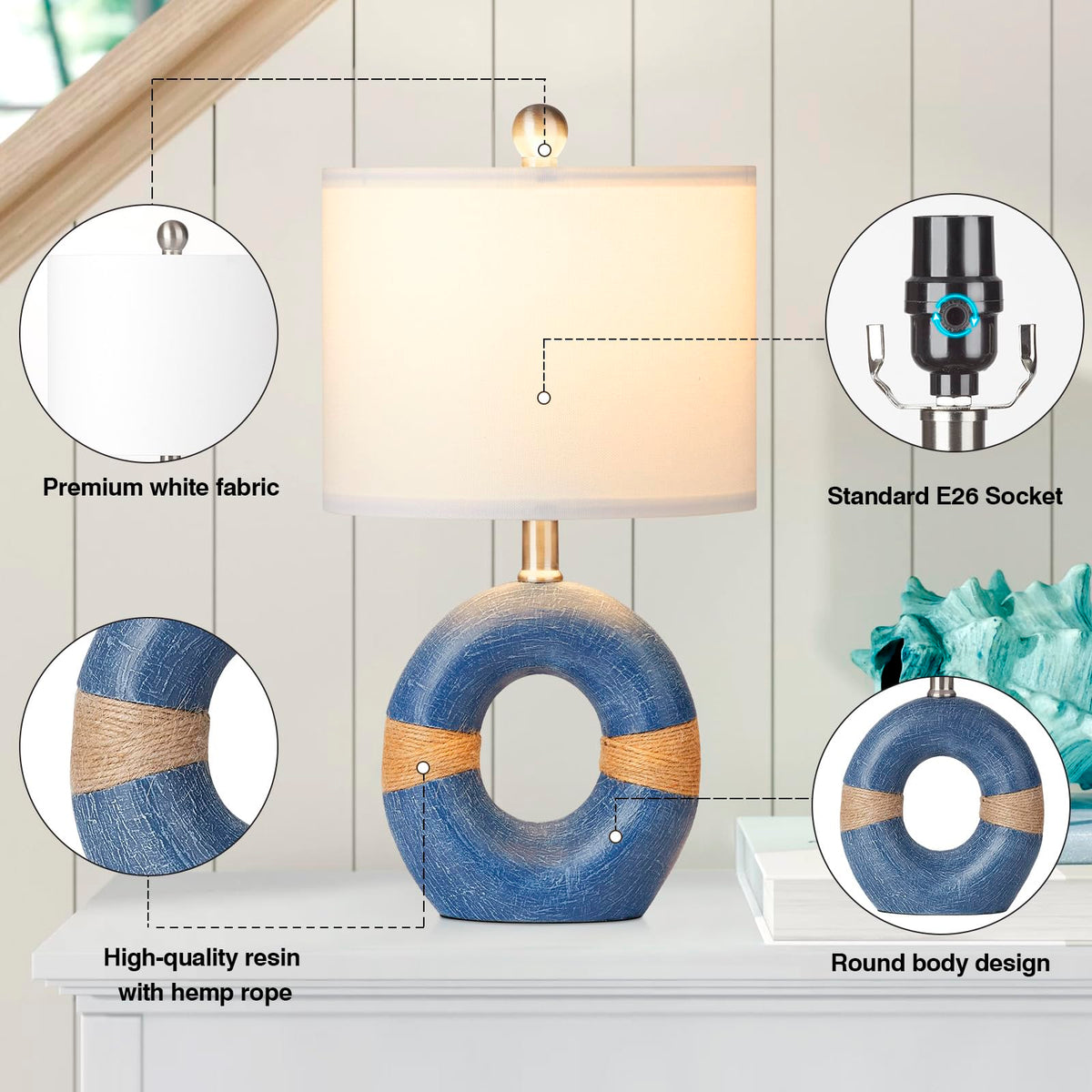 Illuminate your space with the elegance and charm of the Cinkeda Coastal Blue Table Lamps. These small nautical lamps are perfect for your bedroom, living room, or office, providing a blend of functionality and stylish decor.