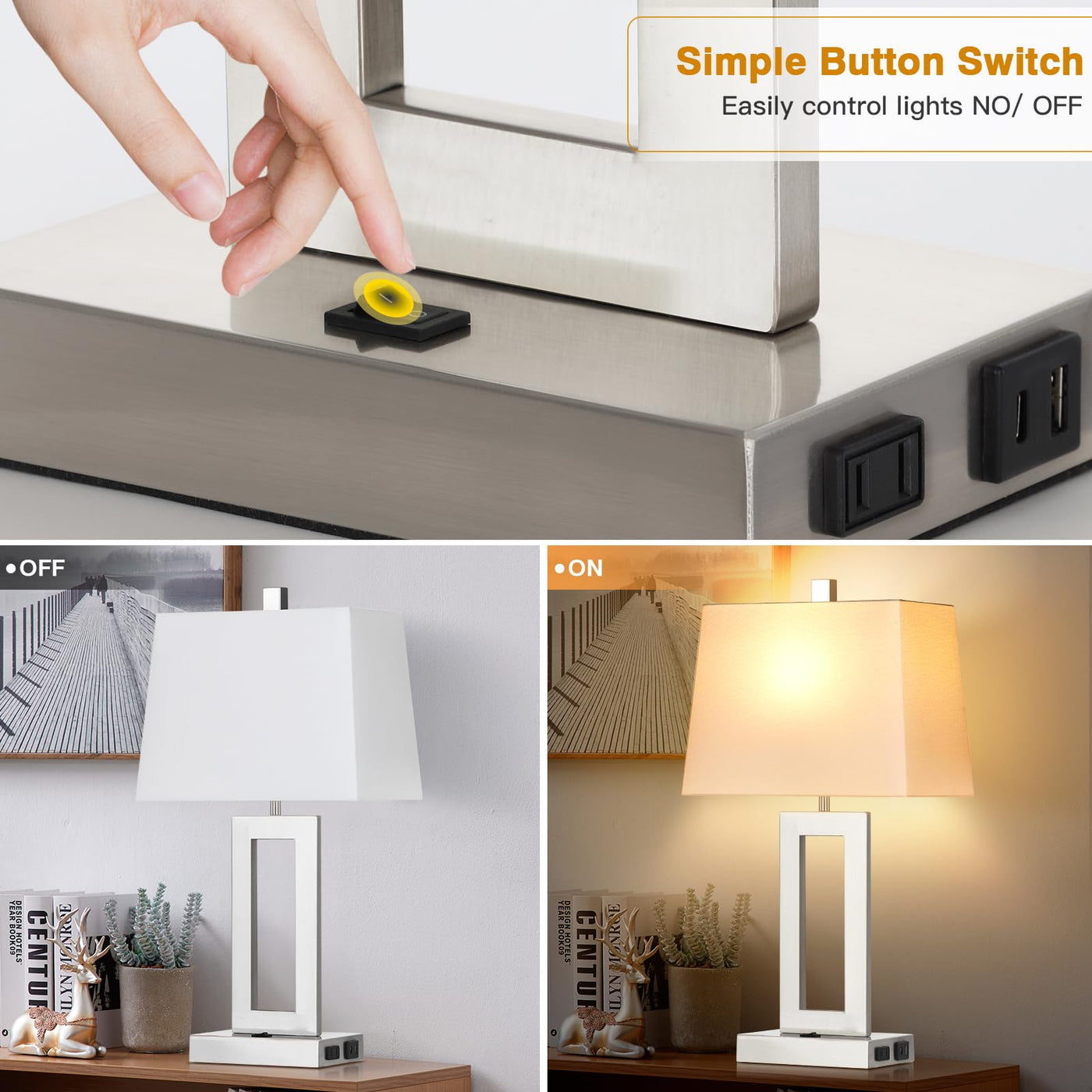Q: Can I charge multiple devices simultaneously with these lamps?A: Yes, the Cinkeda Table Lamps are equipped with built-in dual USB charging ports and a 120V AC power outlet, allowing you to charge up to three devices at the same time, including cell phones and tablets, even when the lamps are turned off.