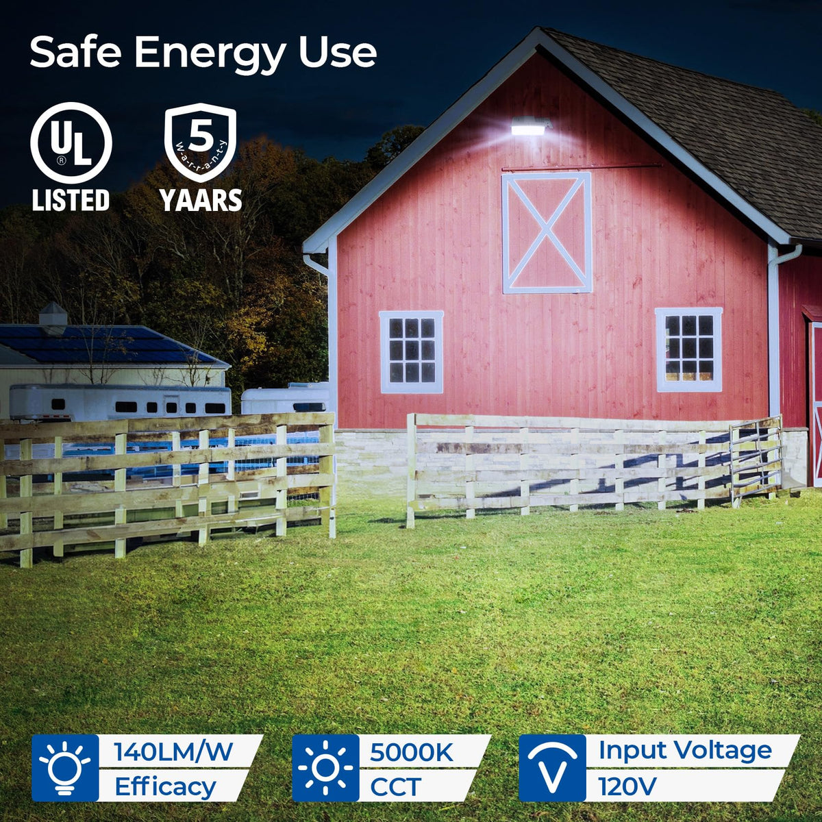 Dusk to dawn led outdoor lighting -High Performance: CINOTON outdoor lighting has rugged aluminum housing, which made the light owns a corrosion resistant cast and excellent heat dissipation. Besides, it is wet location waterproof rate and can be used in outdoor wet locations. This LED barn light has 50,000 hrs long lifespan -Excellent lighting performance: The led flood light outdoor has 4950 lumens high outputs and instant on with 120 wide beam angle floodlight, Bright as Daylight -Heavy Duty & Wet Location: The industrial die-casted aluminum material makes this backyard lights great for outdoor environments. Its sturdy, has excellent heat dissipation and corrosion resistance, and extends the long service life. -Two Mounting Ways:Easy to install, no additional accessories needed. Arm mounting and pole mounting(lamp pole not included) are available to choose. Why choose CINOTON garage lighting? -Bright Cool White Light to Enhance Your Home Security.The outdoor lights for yard automatically turns on at night and turns off during the daytime!