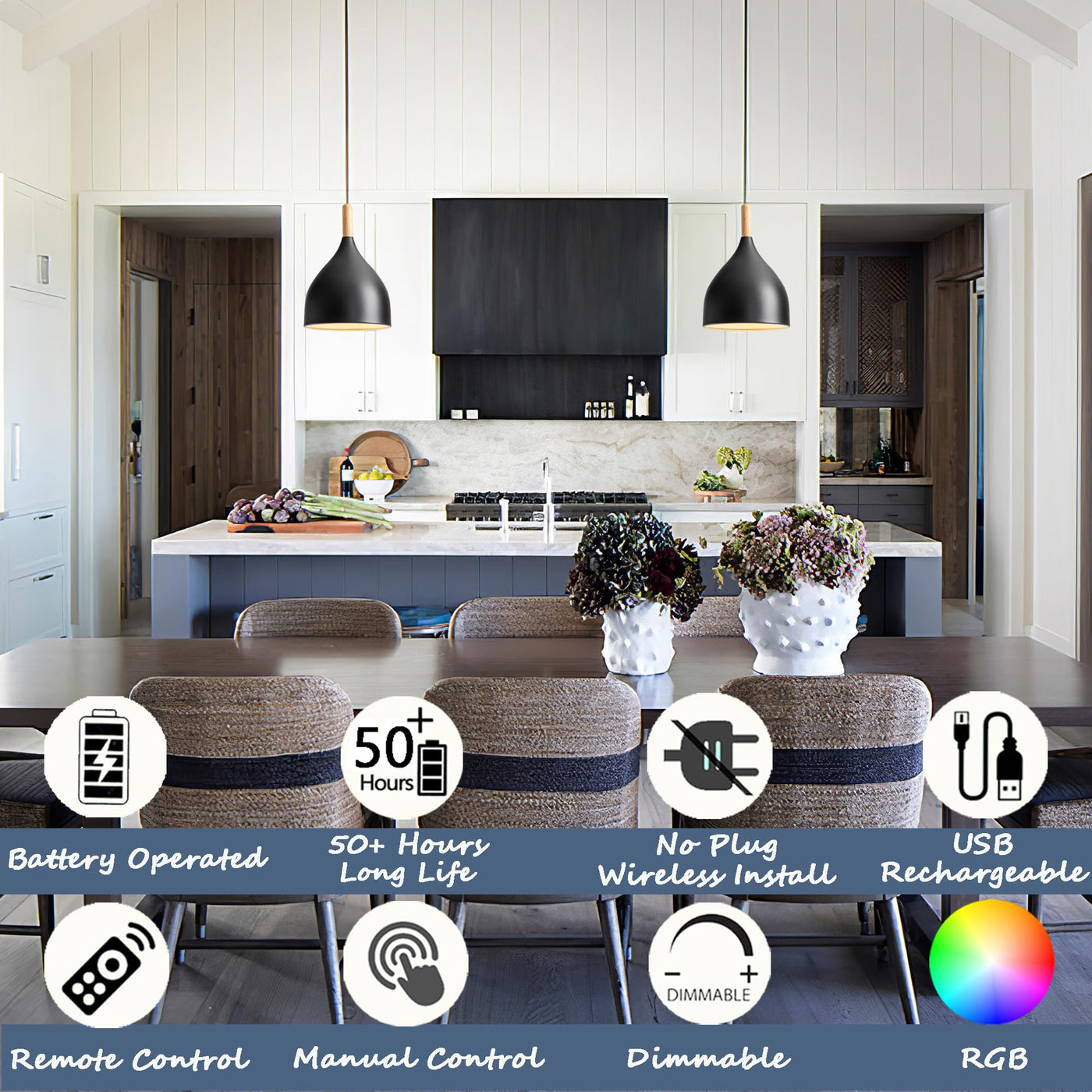 Civaza Battery Operated Hanging Light With Remote,Kitchen Island Chandelier Set Of 2 Non Hardwired,Battery Pendant Light With 50