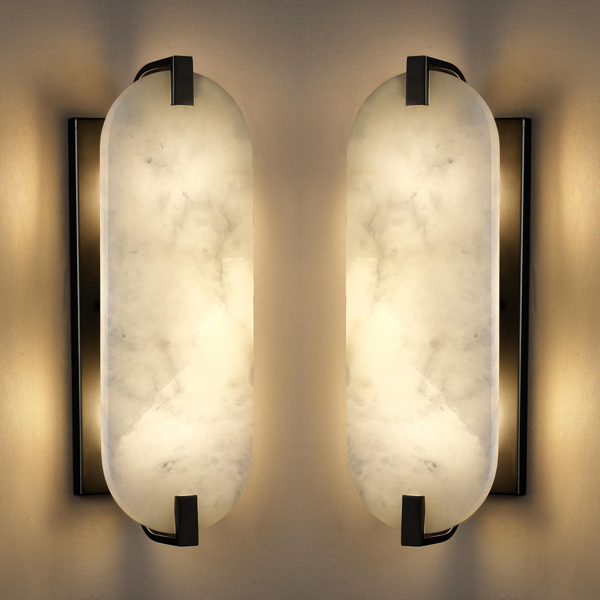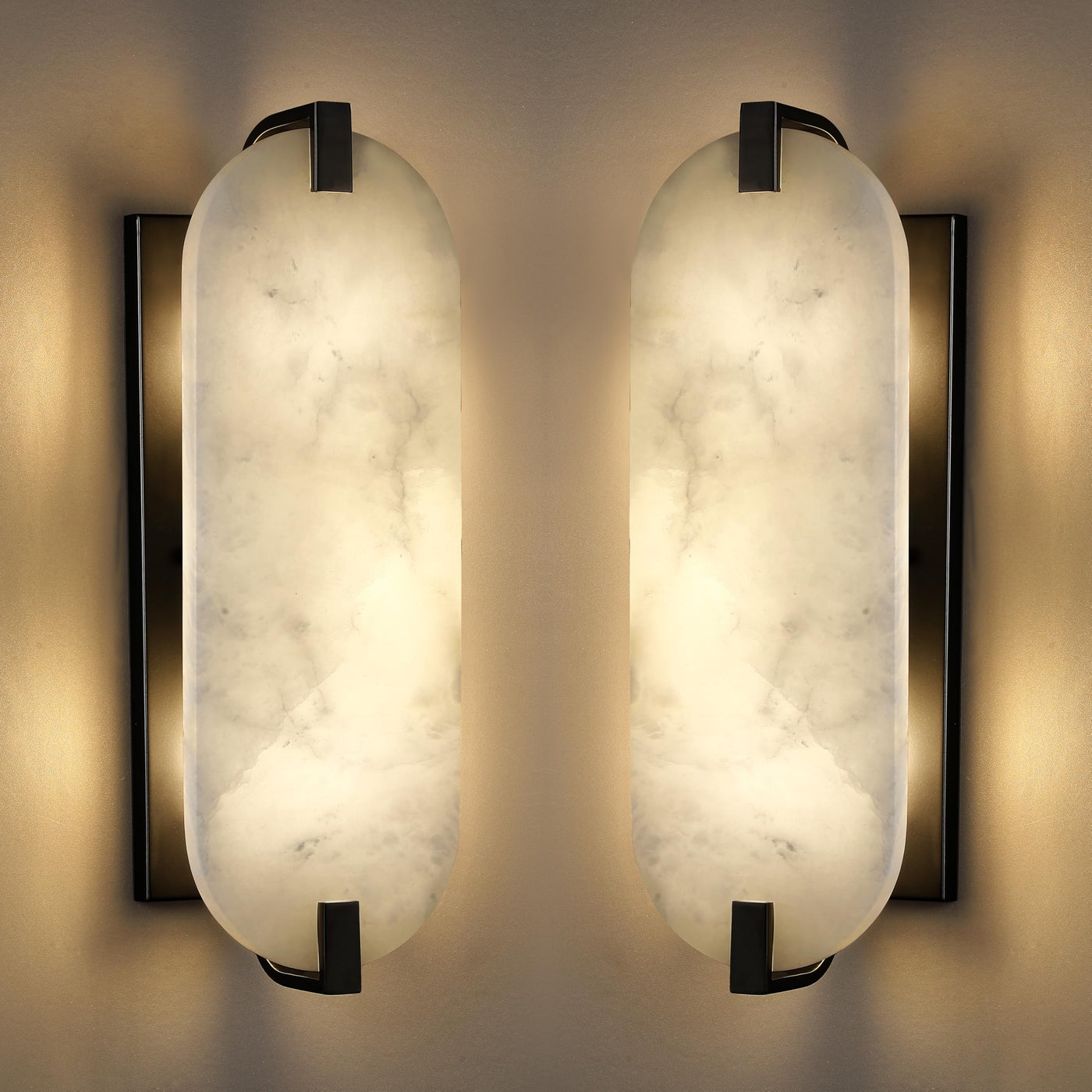 2 Pack 2 Light Alabaster Marble Wall Sconce Modern Concise Style Wall Light Fixture,Black Finish for Bathroom Bedroom Hallway Bedside Living Room