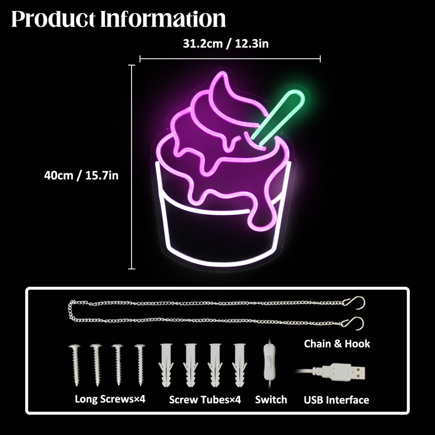 Sundae Neon Signs, Light up Your Room, Light Up Your Life! Exquisite gifts for yourself or friends/family. Amusing home decorative neon accessories kit to decorate your home. The unique shapes and colors of neon lights can add some wonder to your bedroom/bar/party. CKTBLEY Neon Sign We do our best to bring customers a satisfied shopping experience, Please believe in our brand!