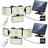 Claoner Solar Outdoor Lights - 3500Lm 288 Led Security Lights With Remote Control, Ip67 Waterproof, 4 Heads Solar Flood Lights,