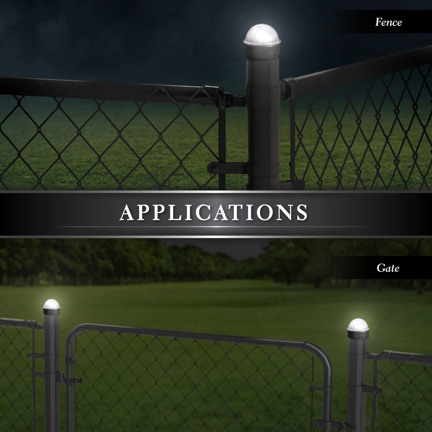 Add a touch of class to your chain link fence with our high performance Summit solar post cap. This one of a kind design by Classy Caps will compliment your existing chain link posts. Turns on automatically every night casting a brilliant white light onto the surrounding area. Manufactured to fit over six standard chain link fence posts - 3” dia. , 2-7/8” dia. , 2. 5” dia. , 2 – 3/8” dia. , 2” or 1-7/8” dia.