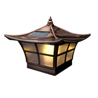 Attractively designed in a Japanese garden style, the patented 4”x4” copper electroplated Ambience solar post cap provides a warm yellow flickering light, giving the effect of a lit candle. Dependable performance with a unique style. Will fit over an actual 4"x4" or 3. 5"x3. 5" post (3. 5"x3. 5" adaptor included)