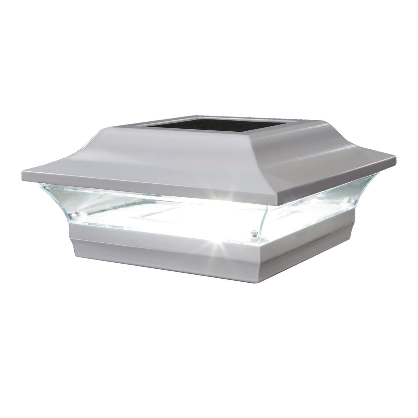 Classy Caps Sl214W Imperial Outdoor Solar Post Cap Fence And Deck Light, Bright White Light, Fits 5" X 5" Post, White Powder Coated Aluminum
