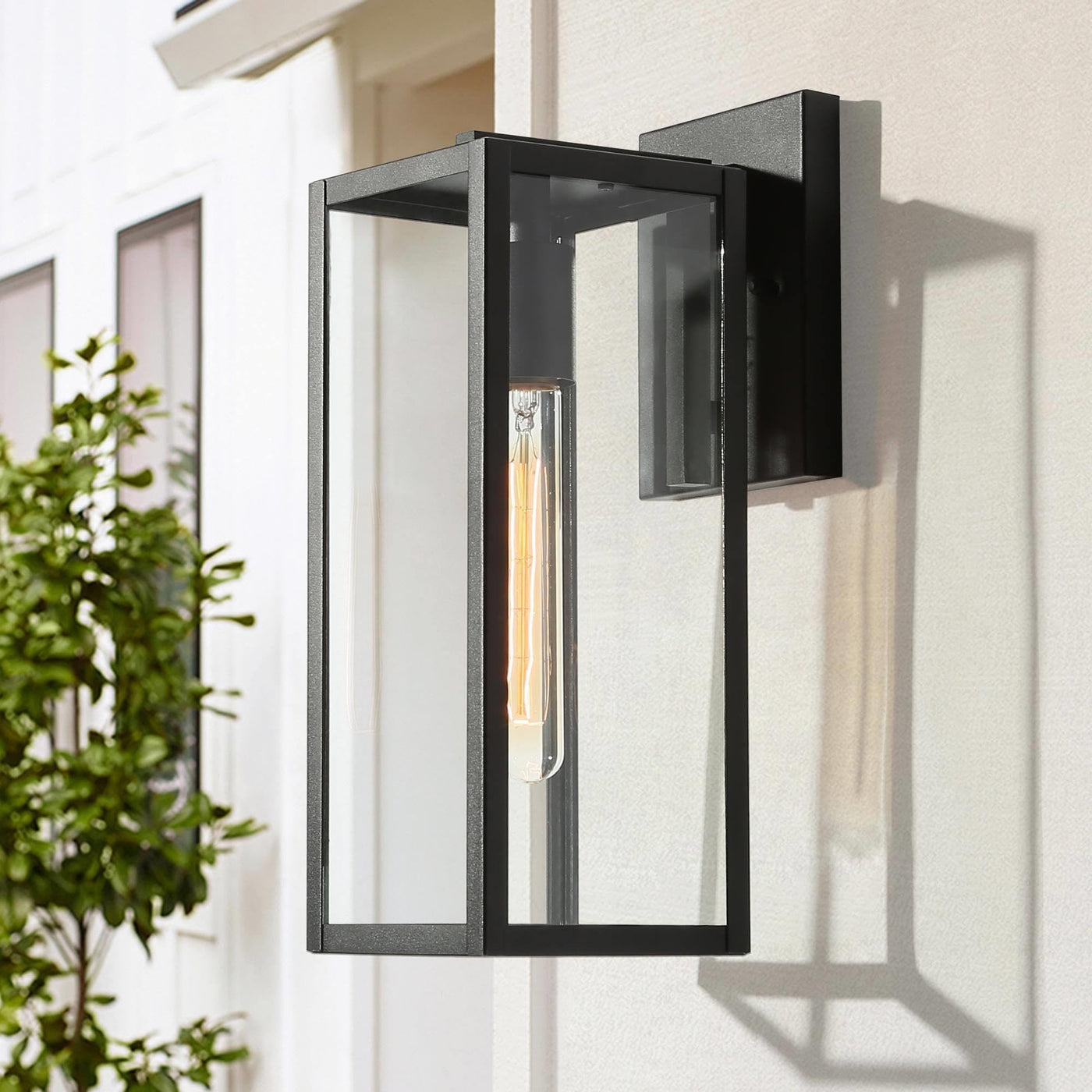 - **Elegant Design**: The classic outdoor light fixture features a modern and refined aesthetic, crafted from a durable metal framework with transparent glass panels. The timeless textured black finish adds sophistication to any setting.