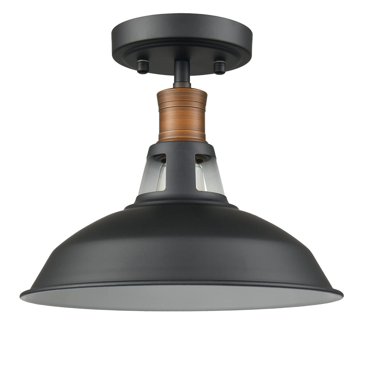 Claxy 1-Light Semi Flush Mount Light Fixture Farmhouse Ceiling Light With Black And White Shade Dimmable