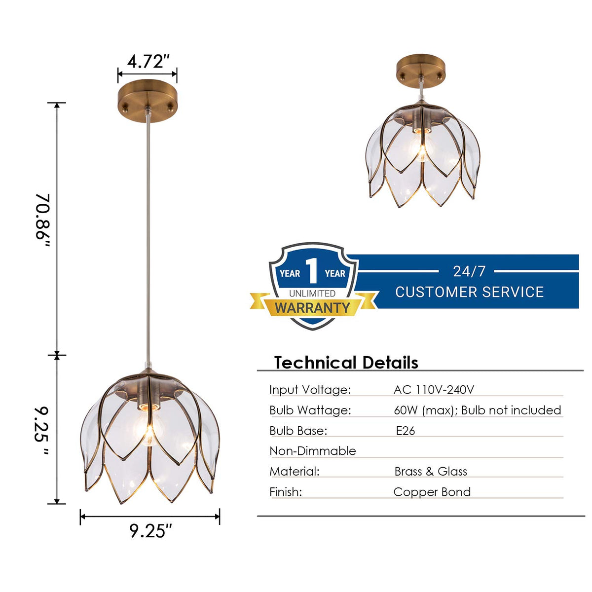 This Vintage Brass Pendant Light Is Designed In Lotus Glass Shade. It Can Not Only Light Up Your Space, Also Can Be A Piece Of Art In The Area.