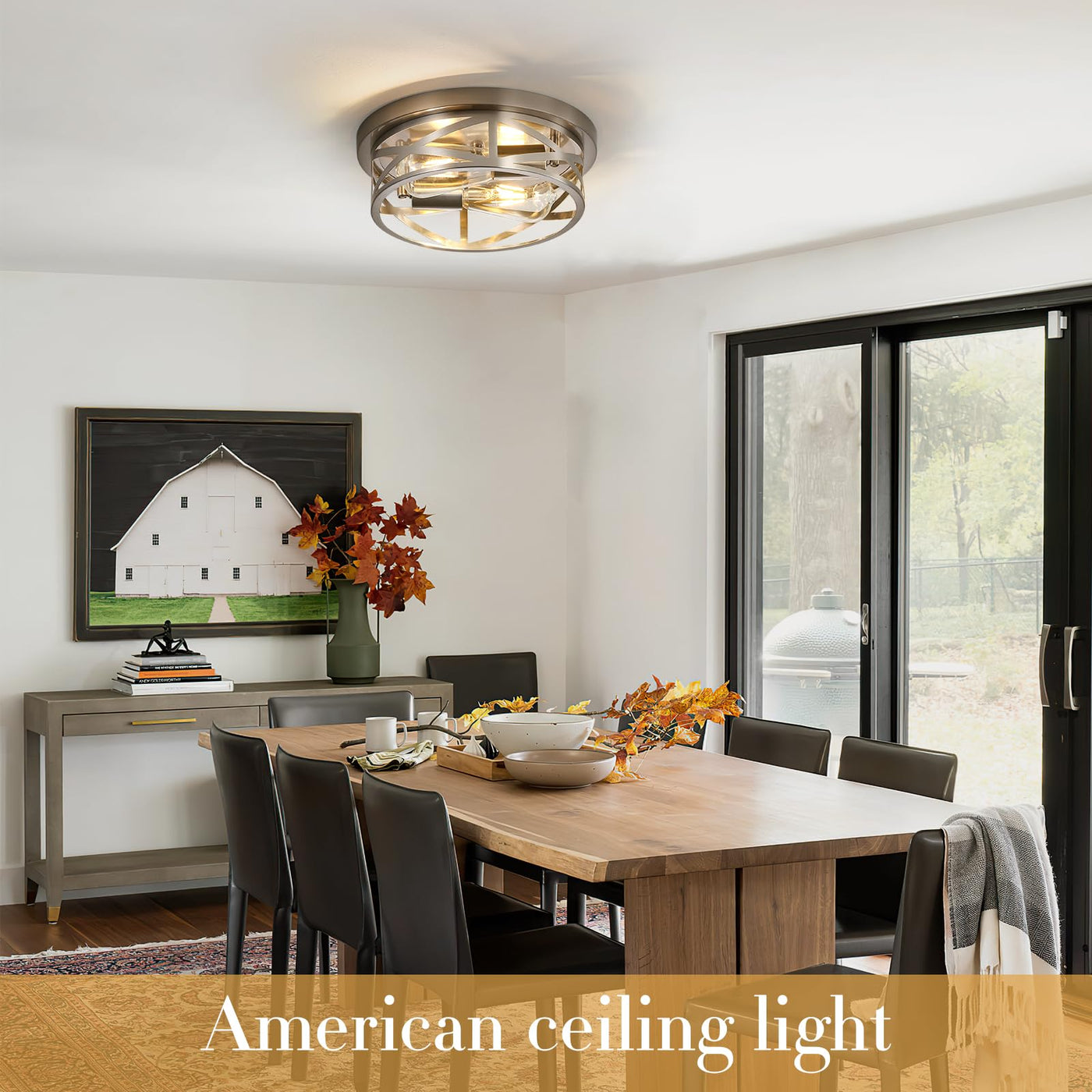 House indoor ceiling lights design chic cage with cross line, two colors, black and brushed nickel finishes, they seamlessly blend rustic charm with modern elegance. Perfect for enhancing the ambiance of your home. Crafted from metal materials, these flush mount ceiling light fixtures are built to last.Their sturdy construction guarantees durability and stability, ensuring years of reliable performance and enjoyment in your living spaces.