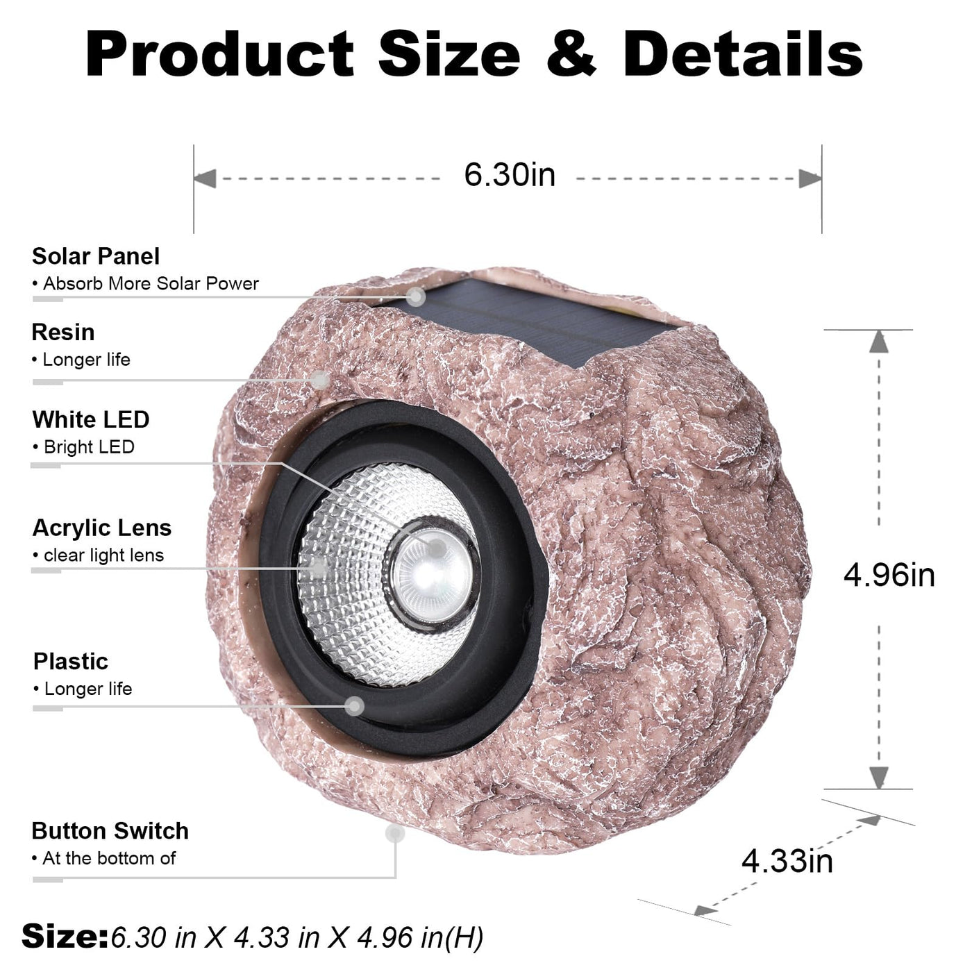 This Solar Spotlight Is A Versatile Outdoor Lighting Solution. Featuring A Solar Panel That Charges During The Day, These Spotlights Provide Bright Illumination For Paths, Sidewalks, Patios And Landscaping After Dark Without The Hassle Of Wiring. Each Unit Produces Directed Light From High-Powered Led Bulbs, Allowing You To See Clearly Without Light Pollution. Water Resistant And Durable, The Spotlights Are Made To Withstand Rain, Snow And Other Outdoor Elements. Installation Is Simple - Just Place The Solar Light Where You Need Extra Visibility And Let The Rechargeable Battery Do The Rest. Low Maintenance And Eco-Friendly, This 2-Pack Of Solar Rock Lights Is A Great Way To Illuminate Walkways And Add Ambiance To Your Outdoor Space From Dusk Until Dawn Without Paying Utility Bills.