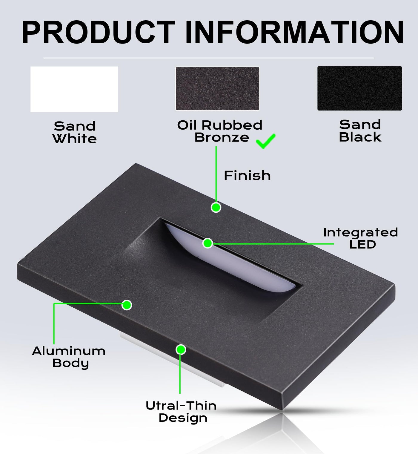 Cloudy Bay 120V 5Cct Dimmable Led Indoor Outdoor Step Light,2700K/3000K/3500K/4000K/5000K,Stair Light,Oil Rubbed Bronze,Pack Of