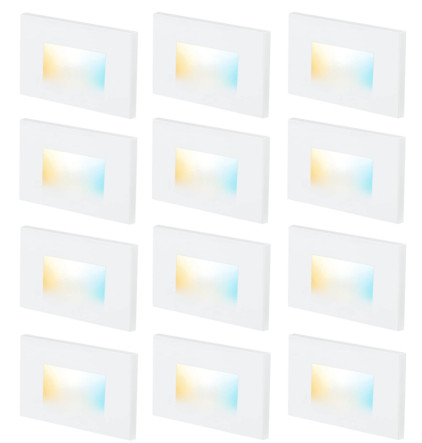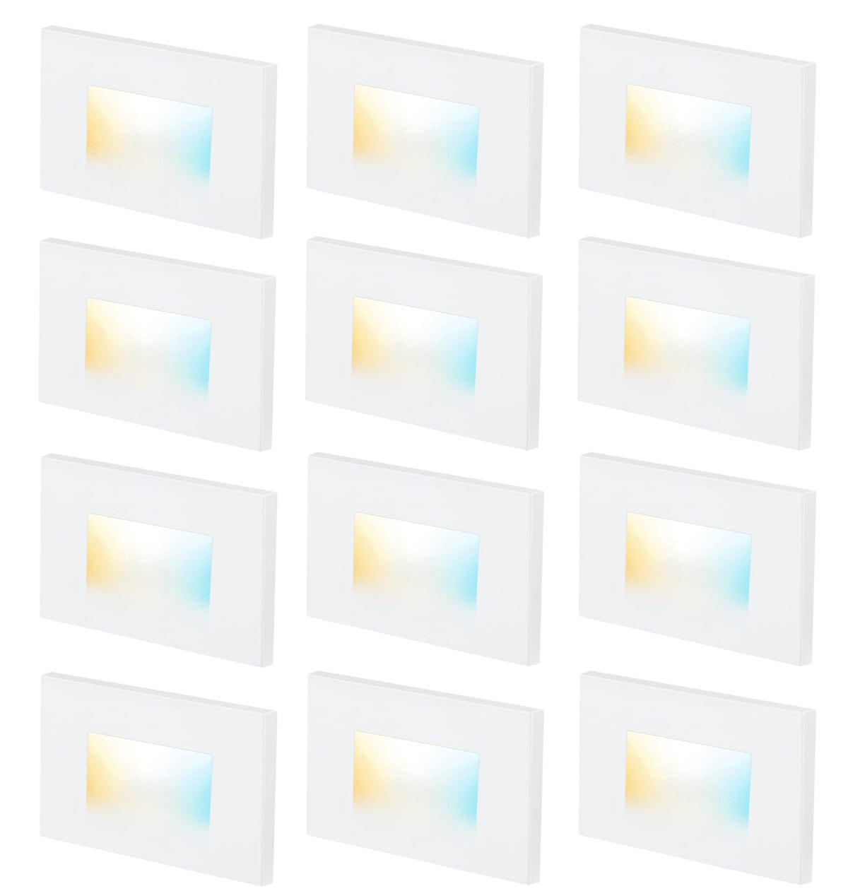 Cloudy Bay 3 Color 120V Dimmable Led Indoor Outdoor Step Light,3000K/4000K/5000K 3W 100Lm Stair Light,White Finish,12 Pack