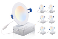 Cloudy Bay 4 Inch 3000K/4000K/5000K Three Color Temperature Selectable, Dimmable 10W Cri 90+,Ultra Thin Recessed Downlight With Junction Box, Canless Wafer Down Light, Damp Location,White Finish, 6Pk