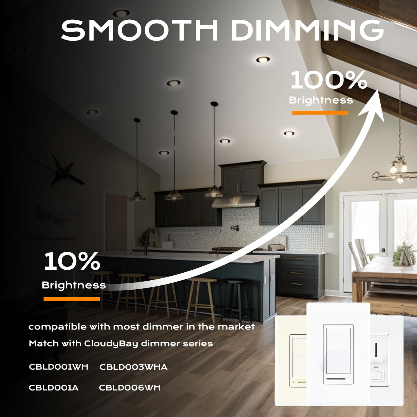 Q: Can these LED lights be dimmed?A: Yes, these 4-inch dimmable LED lights are compatible with most LED dimmers, allowing you to adjust the brightness from 100% down to 10%. This flexibility helps create the desired ambiance in any room.