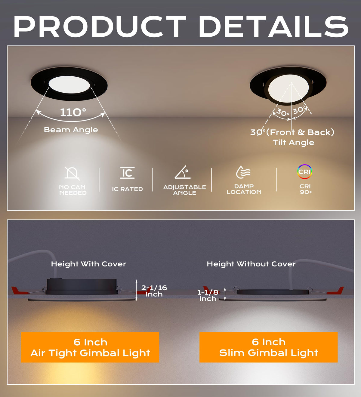 Q: What types of environments are suitable for the CLOUDY BAY 6 inch Swivel LED Gimbal Recessed Light?A: The CLOUDY BAY 6 inch Swivel LED Gimbal Recessed Light is versatile and can be installed in various settings including hallways, living rooms, kitchens, bedrooms, and even walk-in closets, thanks to its 5 color temperature options.