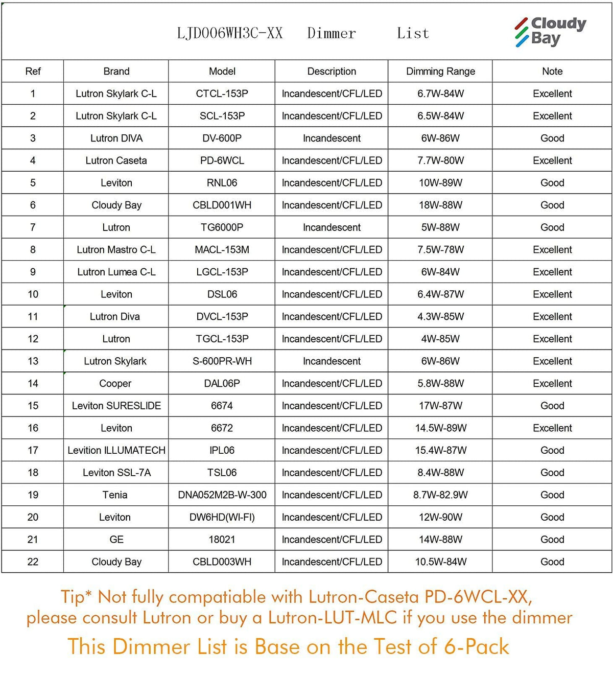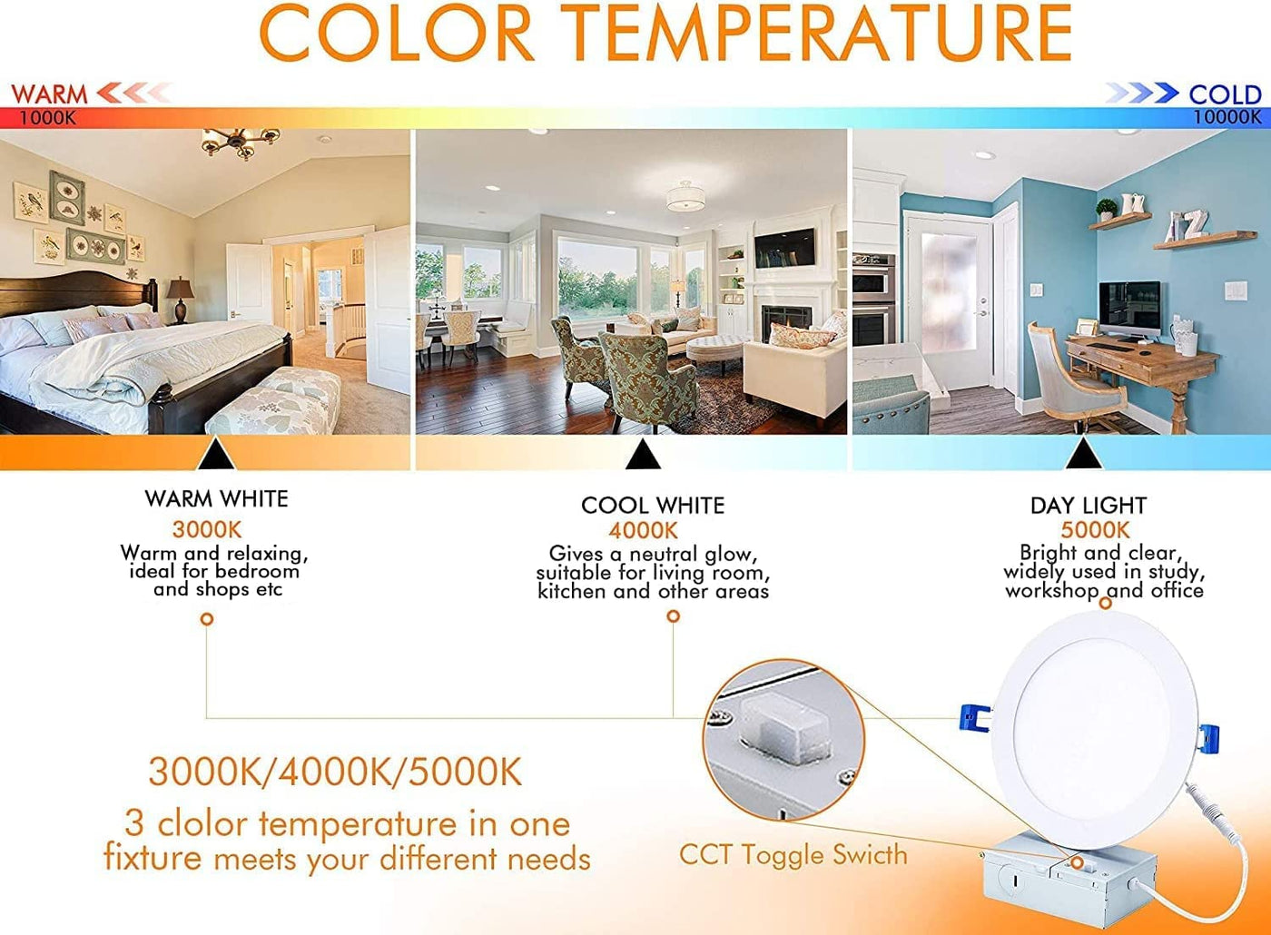 Cloudy Bay 6 Inch 3000K/ 4000K/ 5000K Three Color Temperature Selectable, Dimmable 15W Cri 90+, Ultra Thin Led Recessed Light Wi