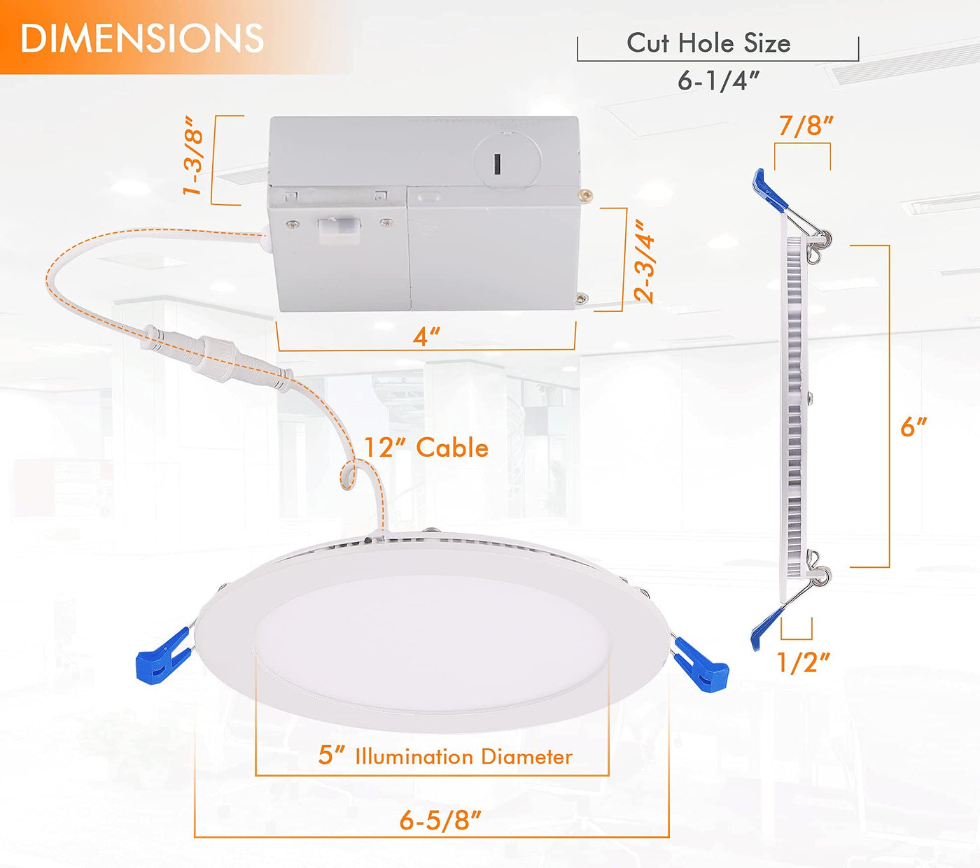 EASY INSTALLATION - Designed for easy retrofit,remodel or new construction installationNo junction boxes or cans required Dimmable LED Light - Works with most LED dimmers,dimming range 10%-100% LED dimmer that is also an ELV dimmer are highly recommended if you need to use ENERgY SAVER - Uses 15W to provide 950 lumens Replace your old 150W can lights with these LED recessed lights Integrated with LED chips, not bulb replaceable The LED ceiling lights have a cRI90+ rating, this allows the light to render more closely to the objectAs true and original color, thus producing a more accurate and vivid 3 YEAR WARRANTY - Assures the rated 25,000 lifetime (average 3-5 hoursday)contact us for an easy and fast replacement
