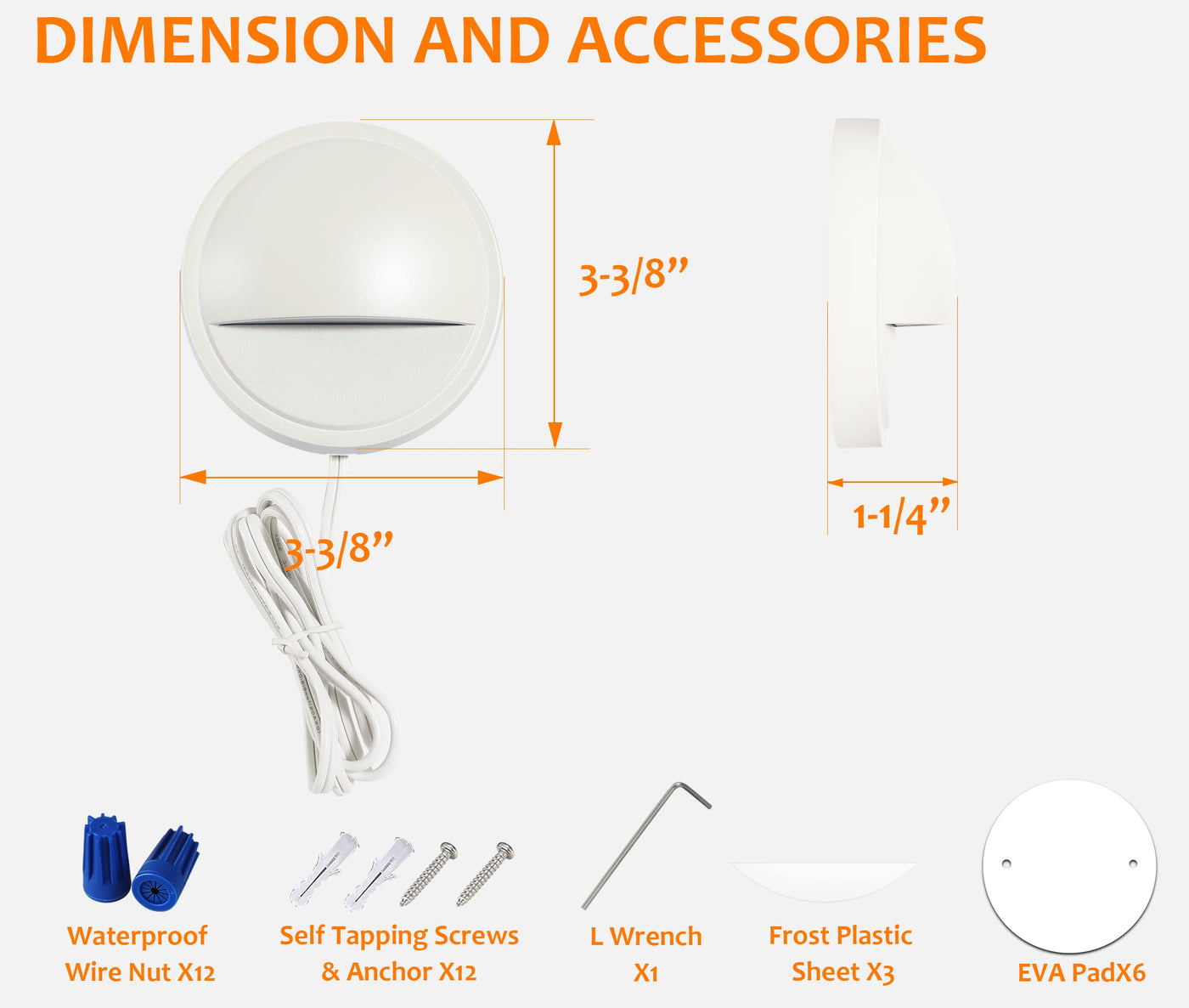 Q: What is included in the installation package for these deck lights?A: The installation package includes all necessary mounting hardware and waterproof wire connectors, ensuring a quick and easy setup without the need for a gang box.