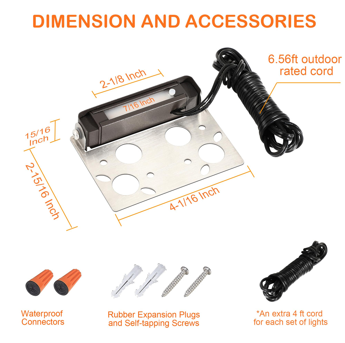 Q: How energy efficient are these lights compared to traditional lighting?A: These low voltage hardscape lights provide 150 lumens of output while consuming just 3 watts of energy, which is equivalent to a traditional 25W halogen light. This makes them highly energy efficient and cost-effective.