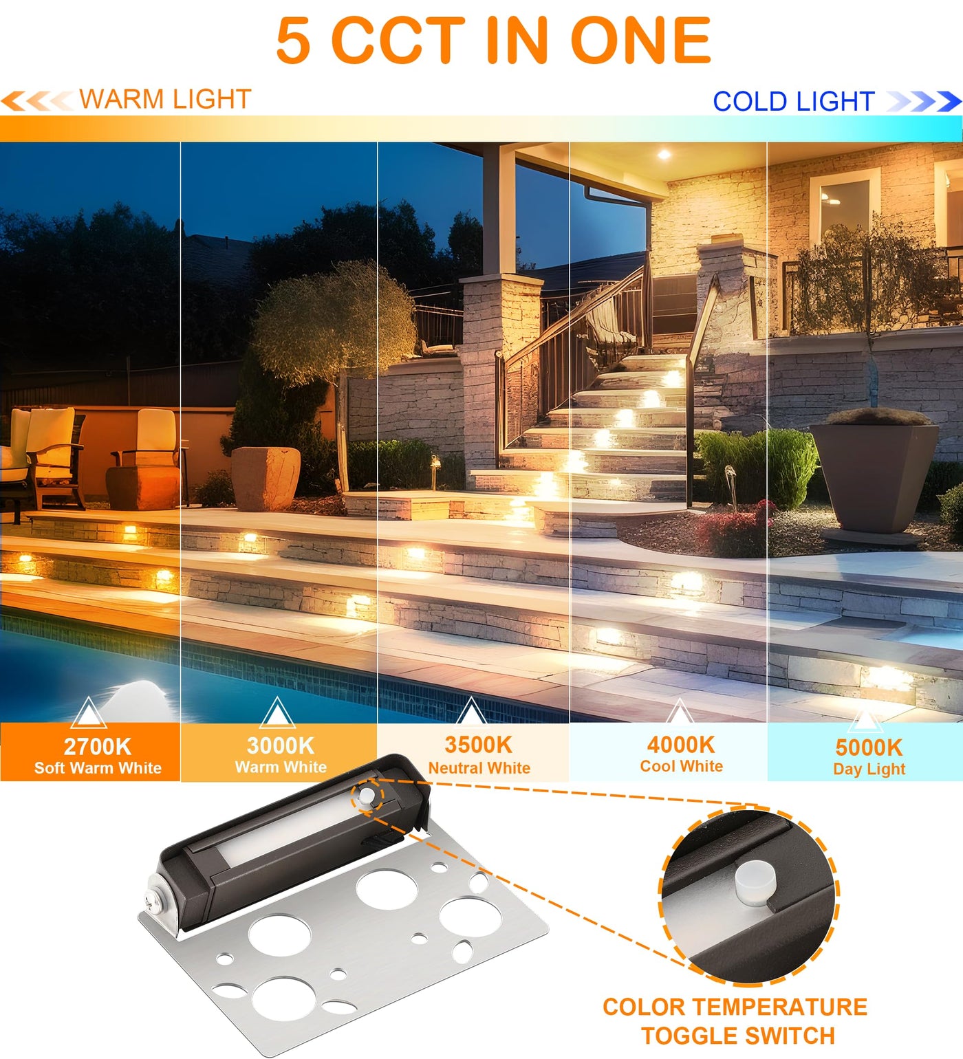 Q: What are the available color temperatures for the CLOUDY BAY Hardscape Paver Light?A: The CLOUDY BAY Hardscape Paver Light features five selectable color temperatures: 2700K, 3000K, 3500K, 4000K, and 5000K. This allows you to choose the perfect ambiance for your outdoor space.