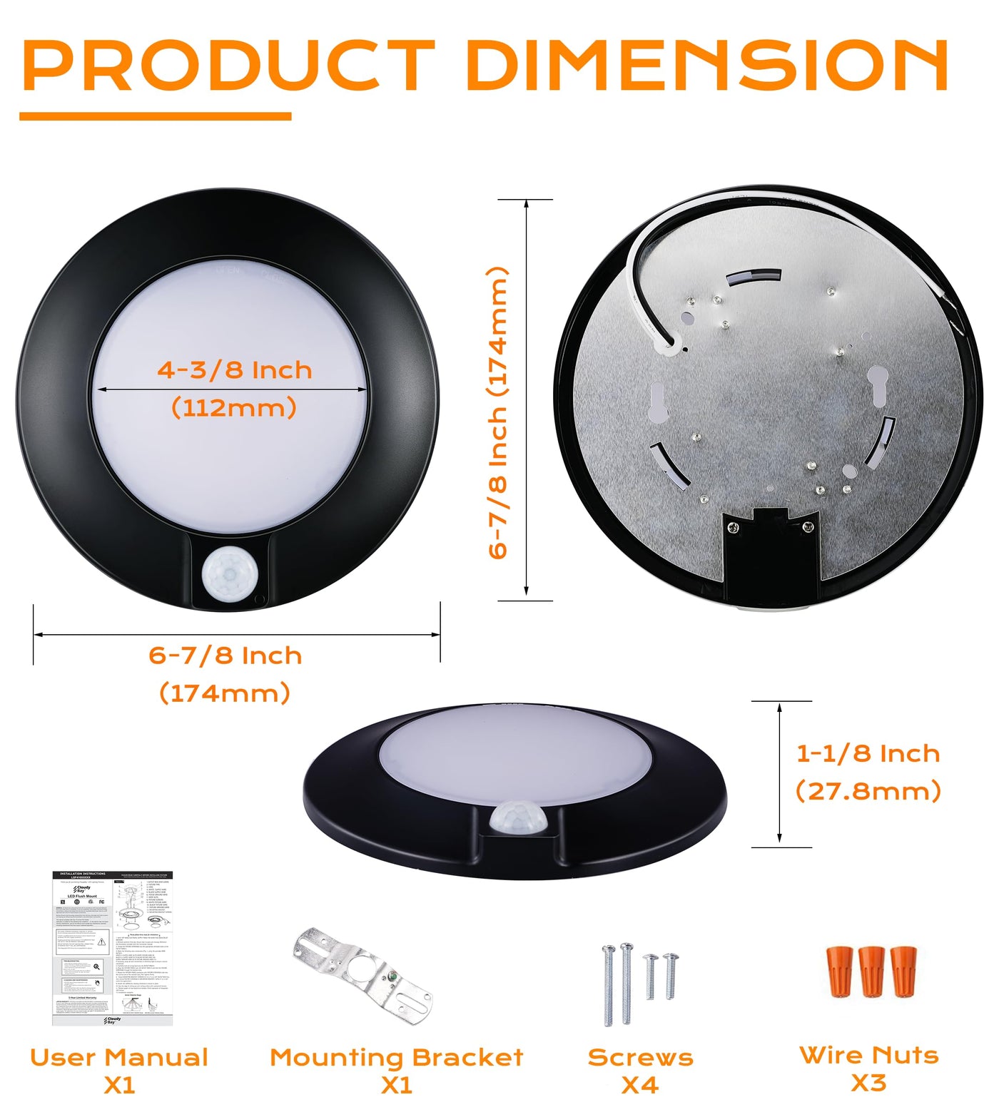 CLOUDY BAY Motion Sensor Ceiling Light, 10W 5000K, 6.5 Inch, Black, 2 Pack, Aluminum, Model 80f5bf28-ebc3