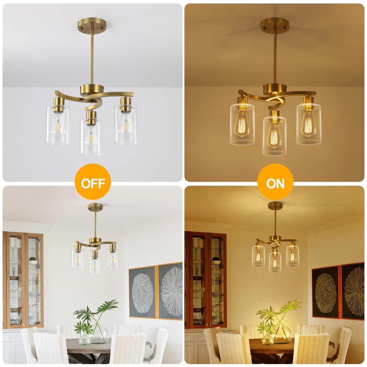 Cnratye 3-Light Gold Dining Room Chandeliers Over Table Contemporary Kitchen Island Pendant Lighting Industrial Hanging Light Fixture For Entryway Hallway Foyer Bedroom Clear Glass Shade