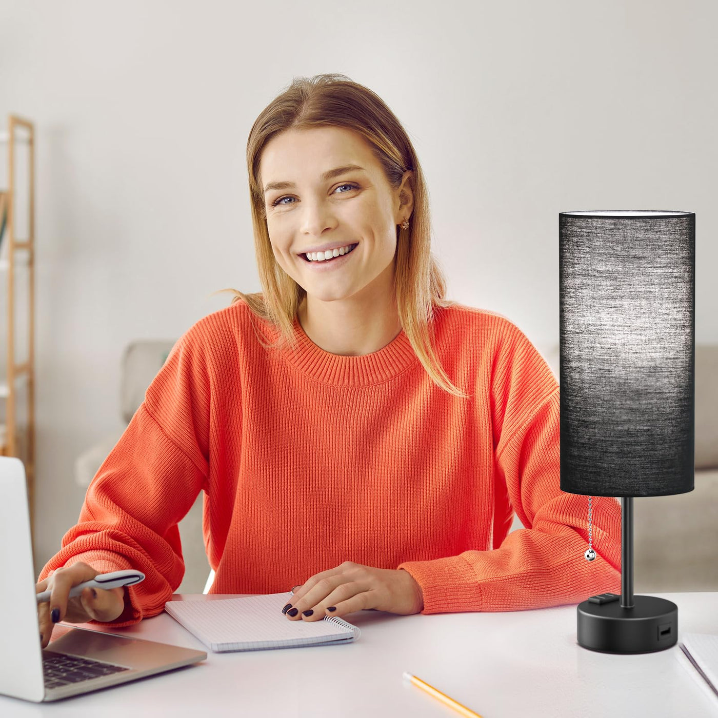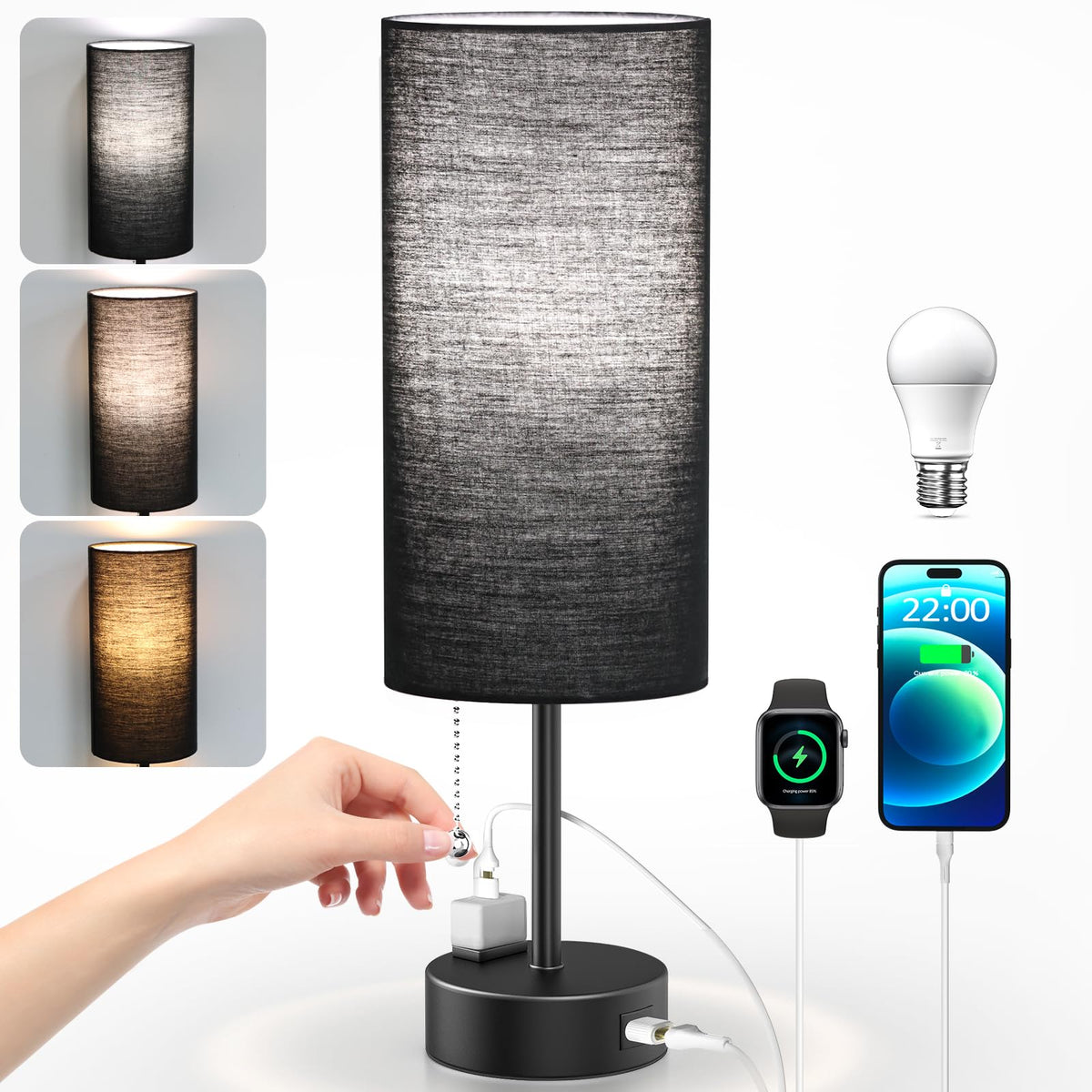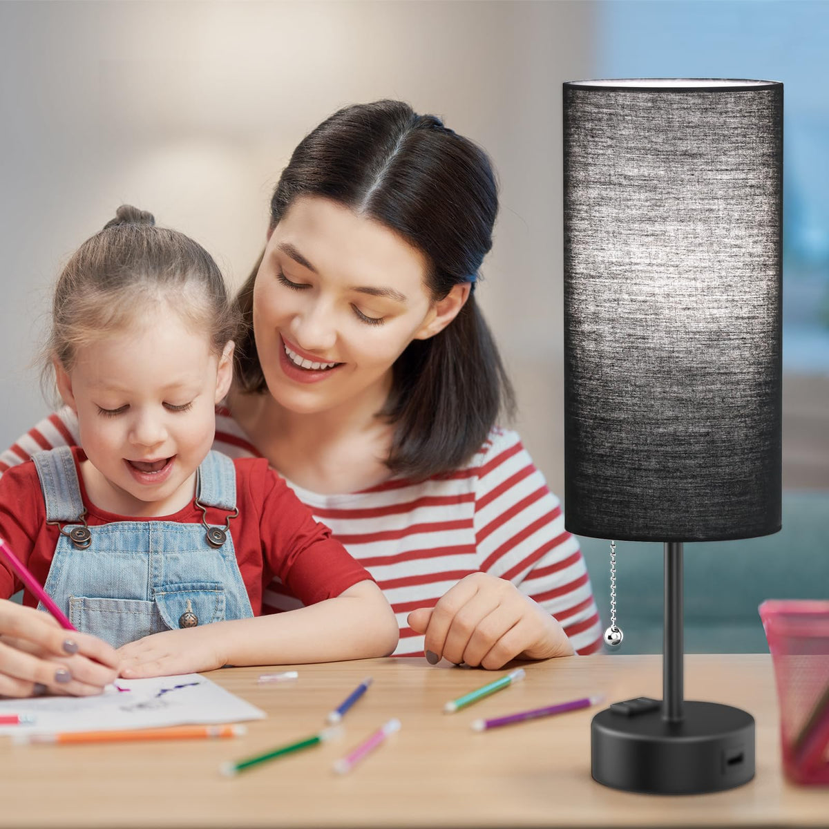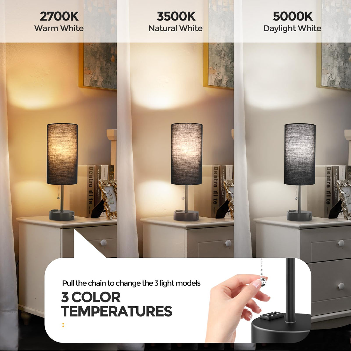 Cnxin Small Black Bedside Lamp With 3 Color Temperatures, Pull Chain Nightstand Table Lamp With Usb Port Outlet For Kids Bedroom Guestroom Livingroom Dorm,1 Pack