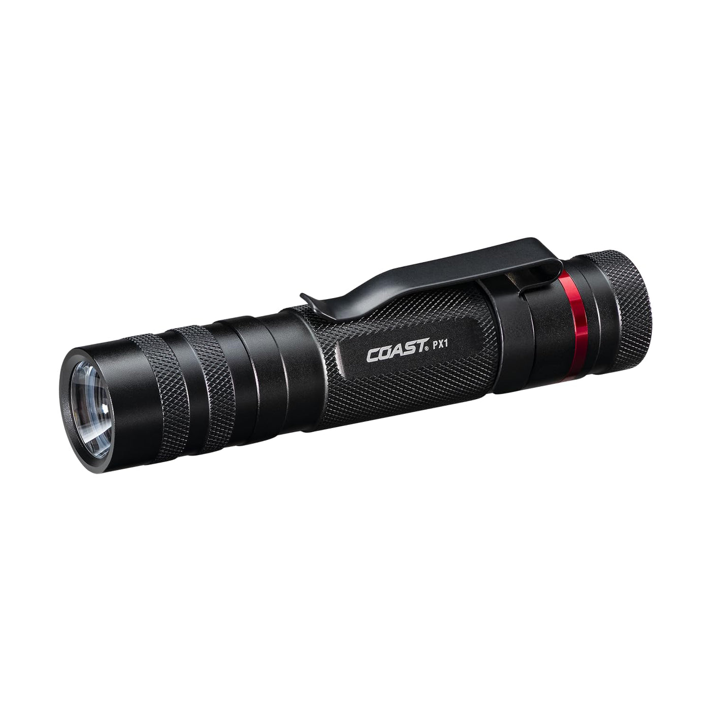 Coupling the Pure Beam Optic with the ability to twist focus, the PX1 Flashlight will be your trusted sidekick for all of your daily work in a variety of distances. While in flood mode, the light casts a huge circle of light that is equally bright across without any dark spots. Then twist it into spot mode and the light will reach far downrange with a transition halo that allows for a large viewing area surrounding the tight spot beam. Add a reversible clip to either secure in your pocket or attach to the bill of your hat and you have ultimate versatility. With Coast's commitment to quality, the PX1 Flashlight is impact resistant, weather resistant and its LED is virtually unbreakable. The PX1 Flashlight is backed by Coast. Tested and rated to ANSI/FL1 standards.