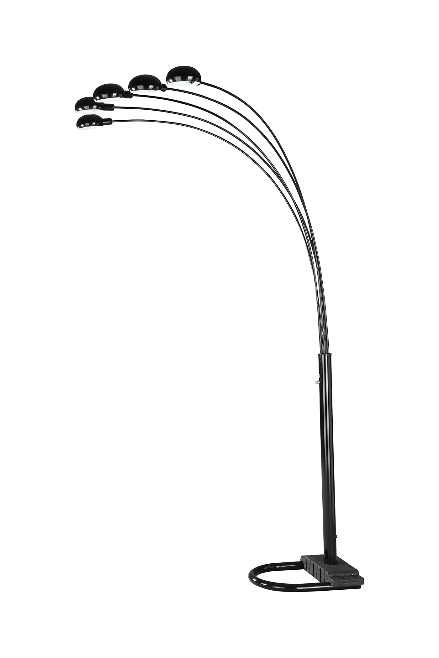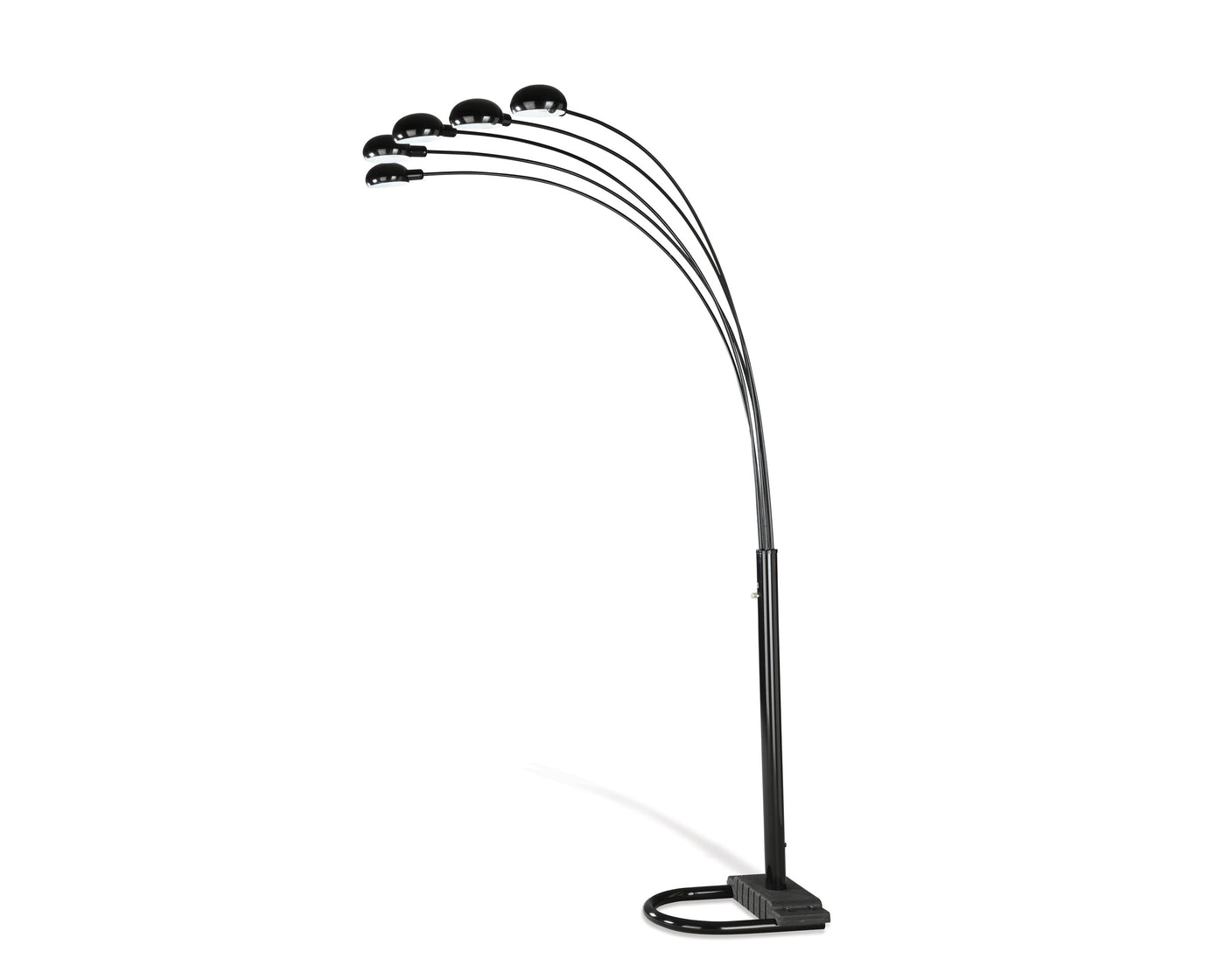Get all the light you need with this one-of-a-kind floor lamp. It features five flexible lamp heads that brighten up a large sectional. Or, if the mood calls for it, flip the dimmer switch to make a loveseat even more romantic. The lamp has a wide floor base for stability to support the curved lamp heads. Finished in black satin.